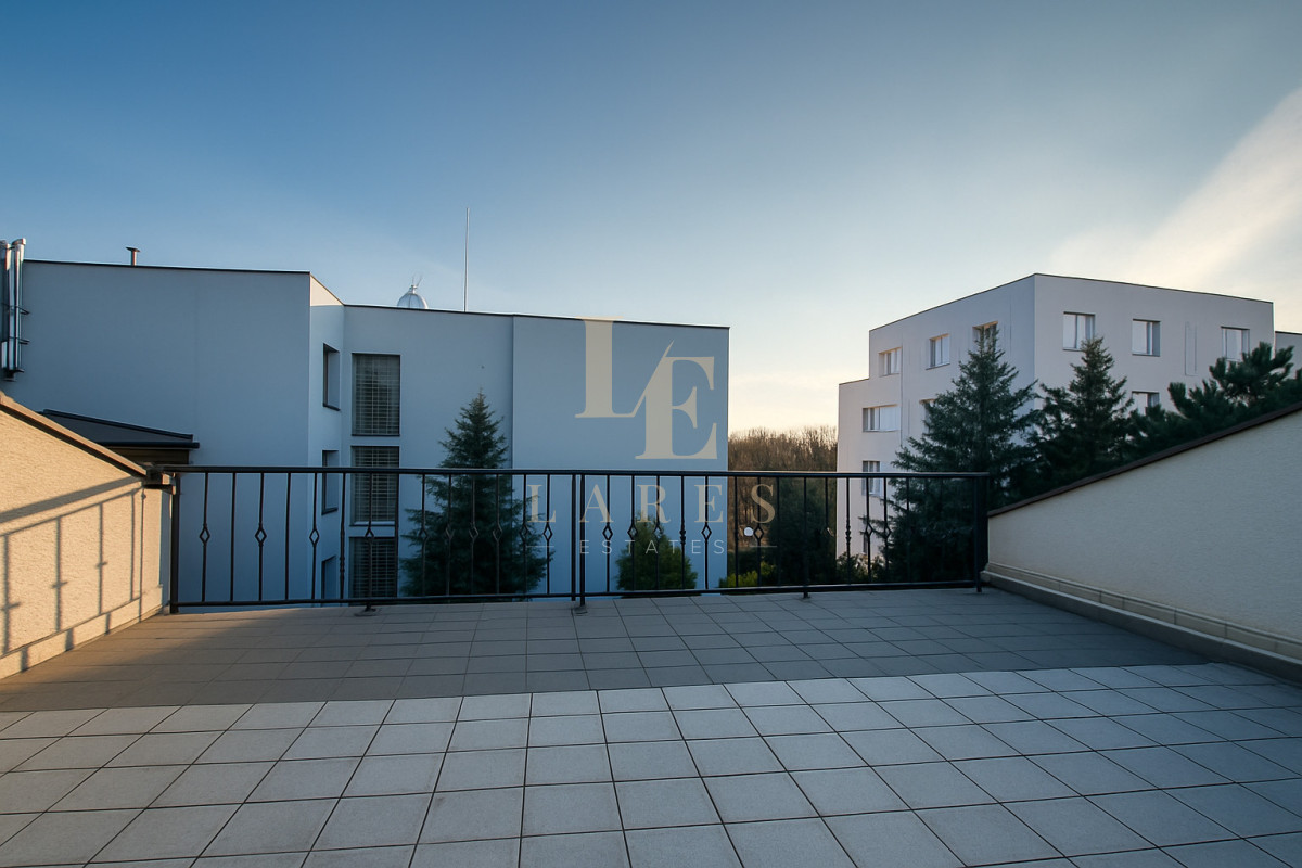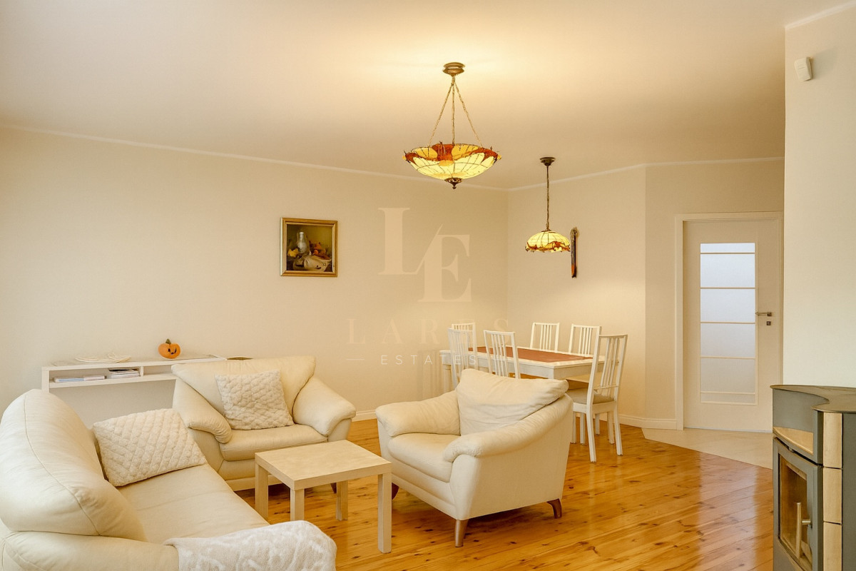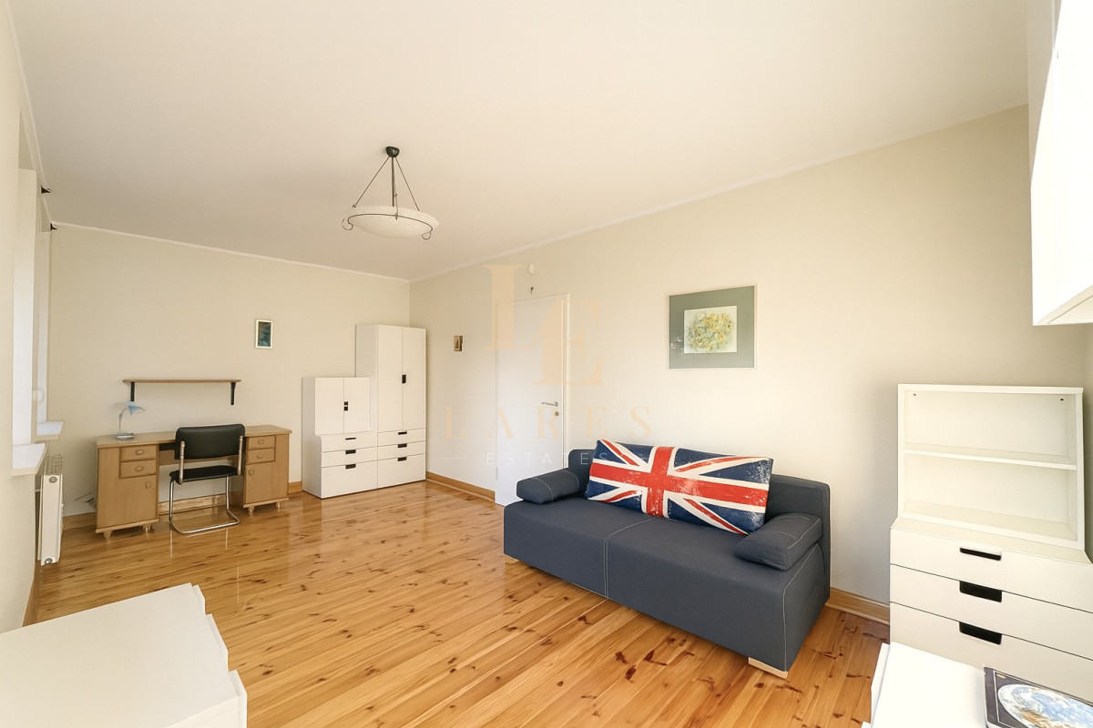 - salon z wyjściem na balkon oraz zejściem do prywatnego ogródka