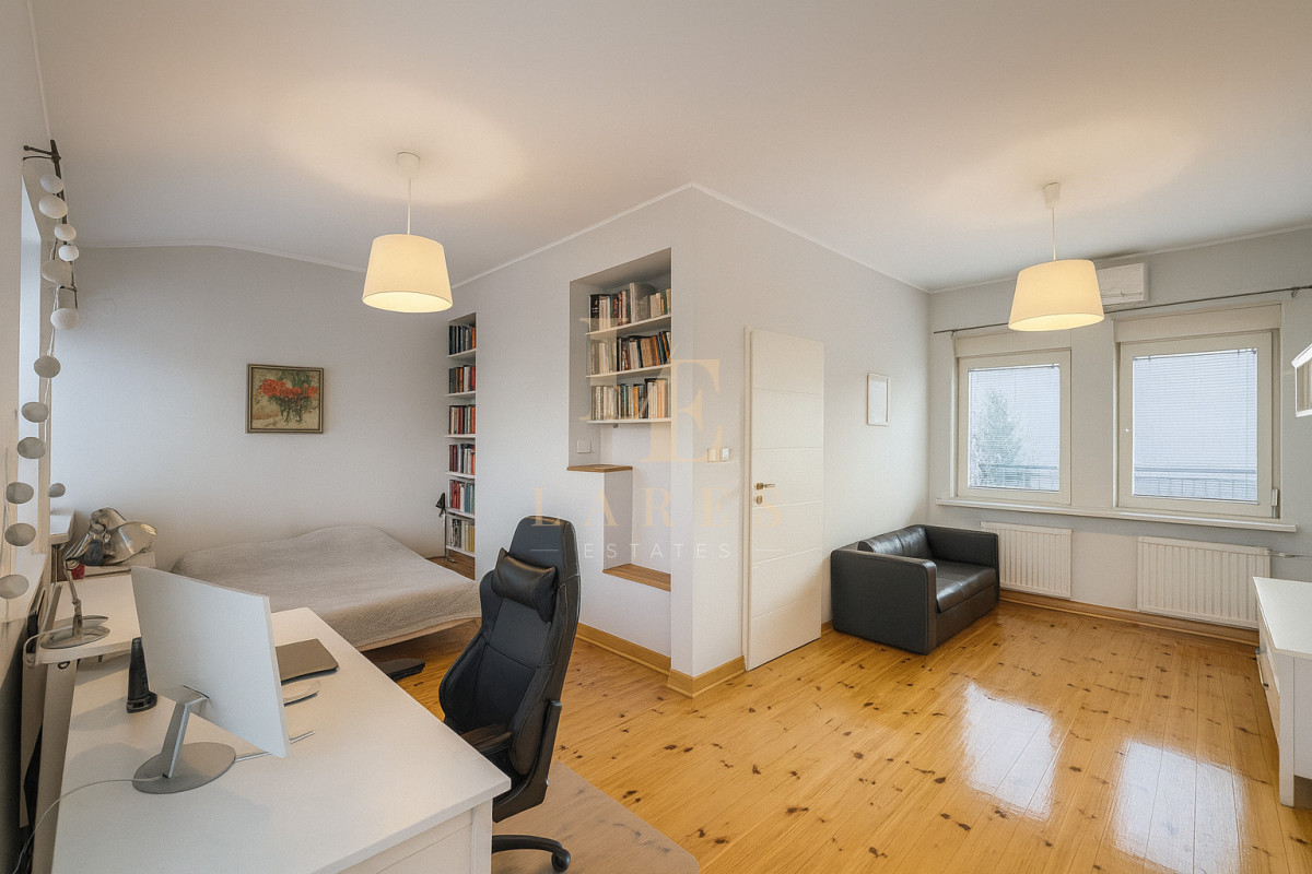 - otwarta, jasna przestrzeń z wyjściem na duży taras. Zainstalowana klimatyzacja zapewnia komfort przez cały rok. Układ umożliwia wydzielenie dwóch niezależnych pokoi oraz wykonanie dodatkowej łazienki, co daje szerokie możliwości aranżacyjne.