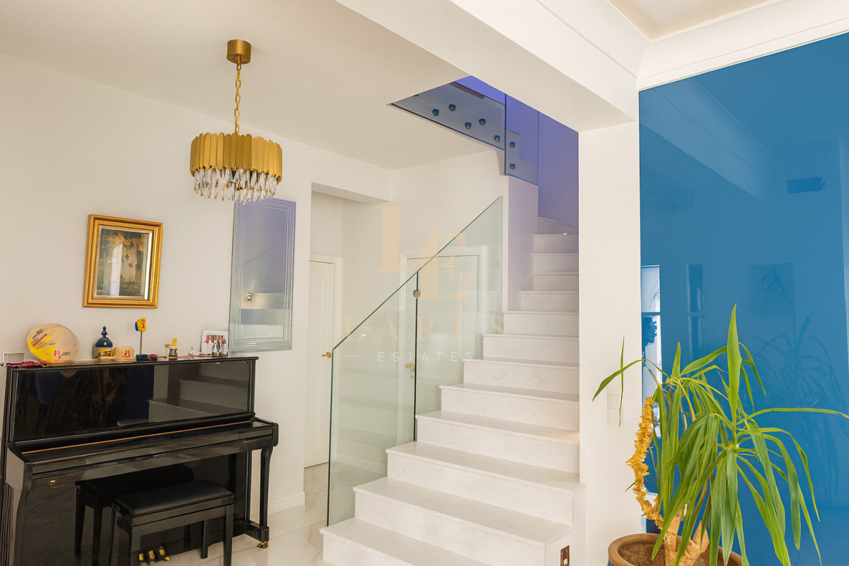 - Zabezpieczenia: system monitoringu w domu i na zewnątrz, alarm, kuloodporne szyby przy klatce schodowej