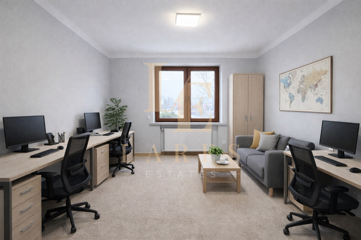 Do wynajęcia funkcjonalny, trzykondygnacyjny dom o łącznej powierzchni 150 m², położony na zamkniętym i monitorowanym terenie. Nieruchomość doskonale sprawdzi się jako siedziba firmy, biuro, kancelaria, gabinety lub inna spokojna działalność gospodarcza.