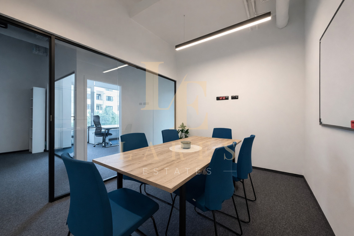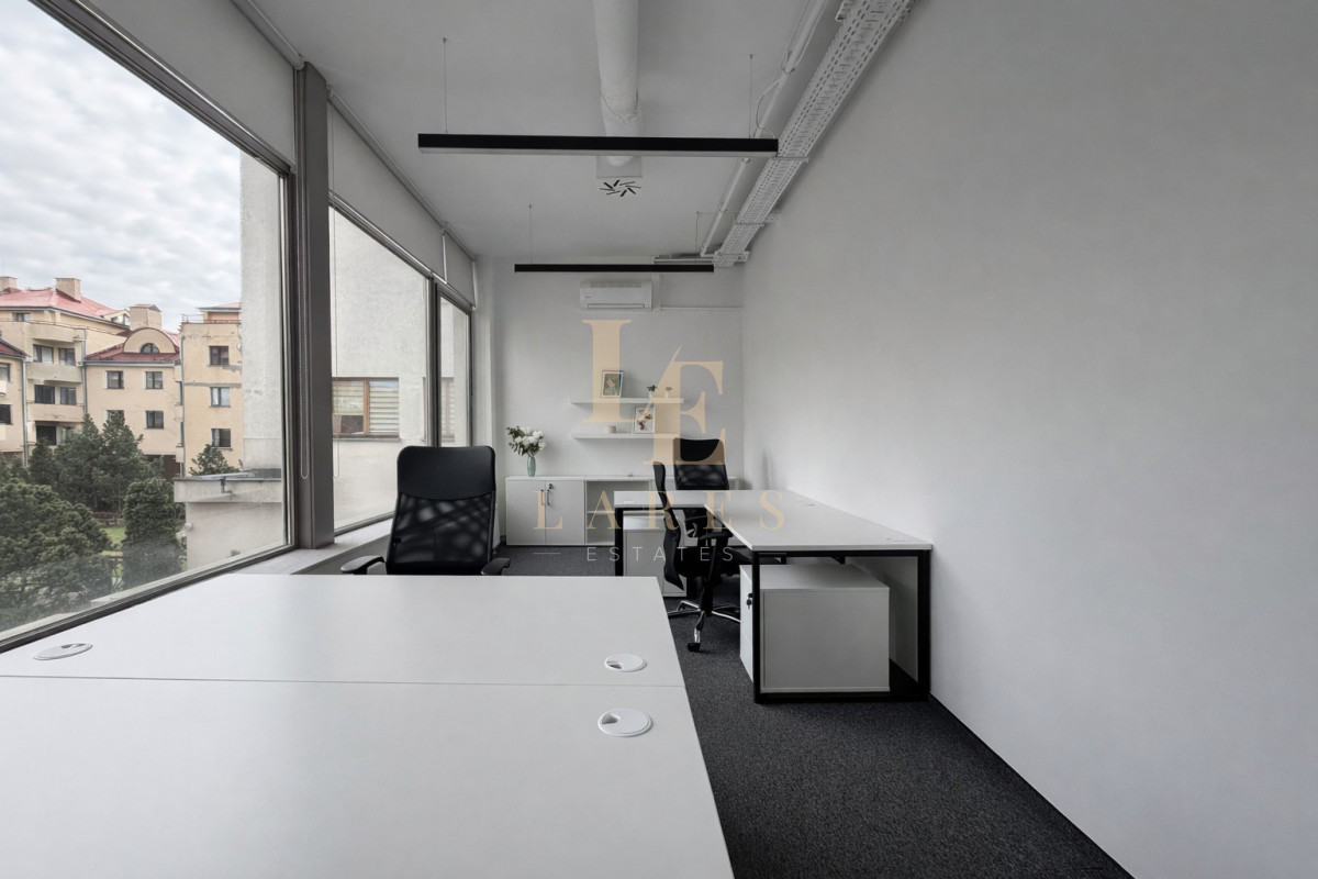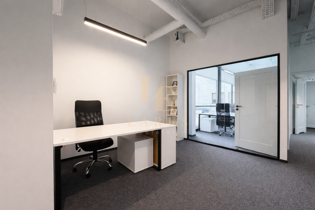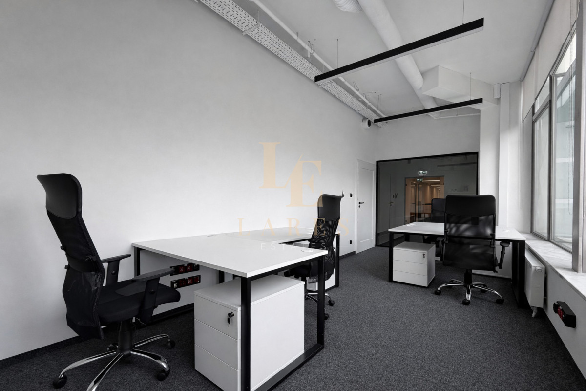 - w pełni umeblowane biura (biurka, ergonomiczne fotele, stół konferencyjny, krzesła)