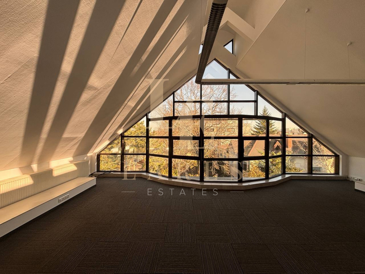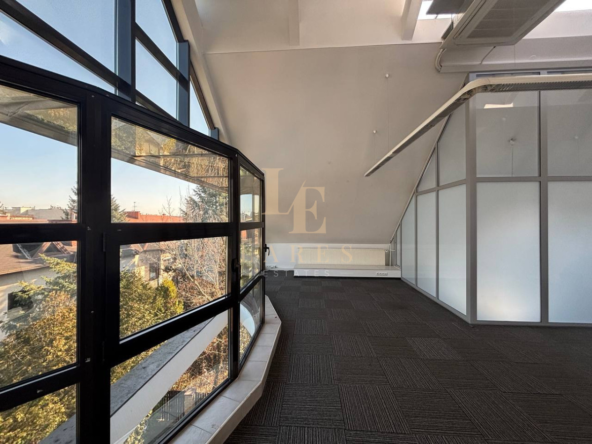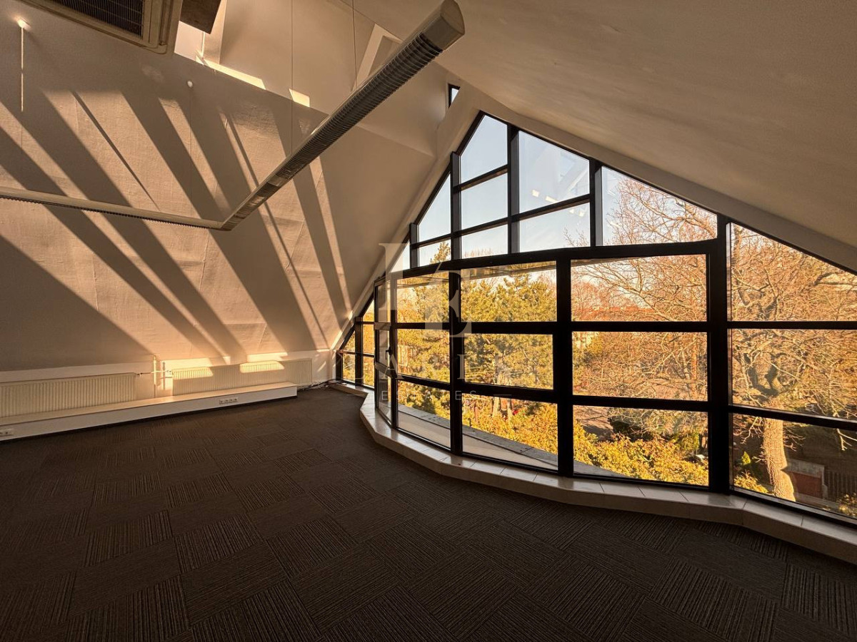 - głównego pomieszczenia biurowego - 54 m² z dużymi panoramicznymi oknami i widokiem na zieleń