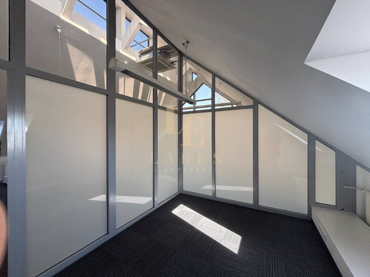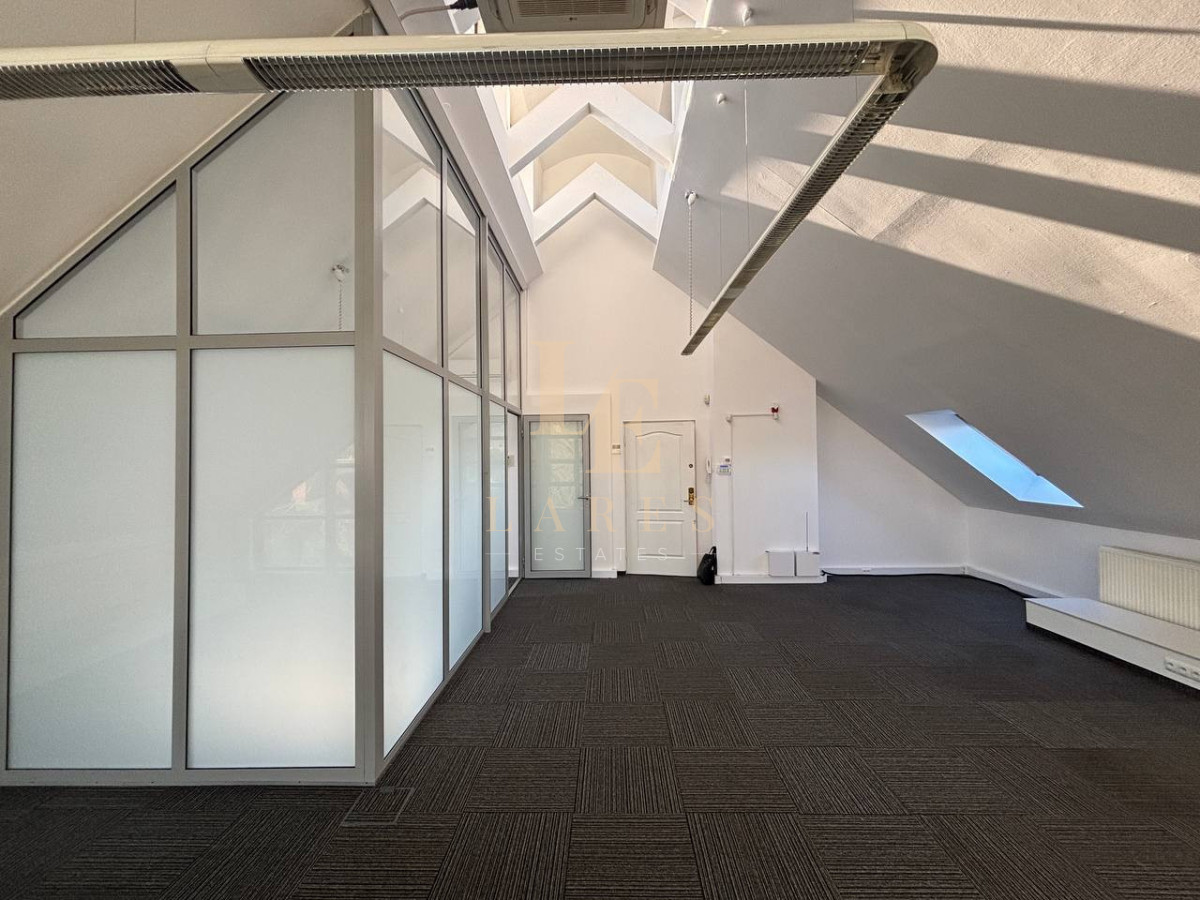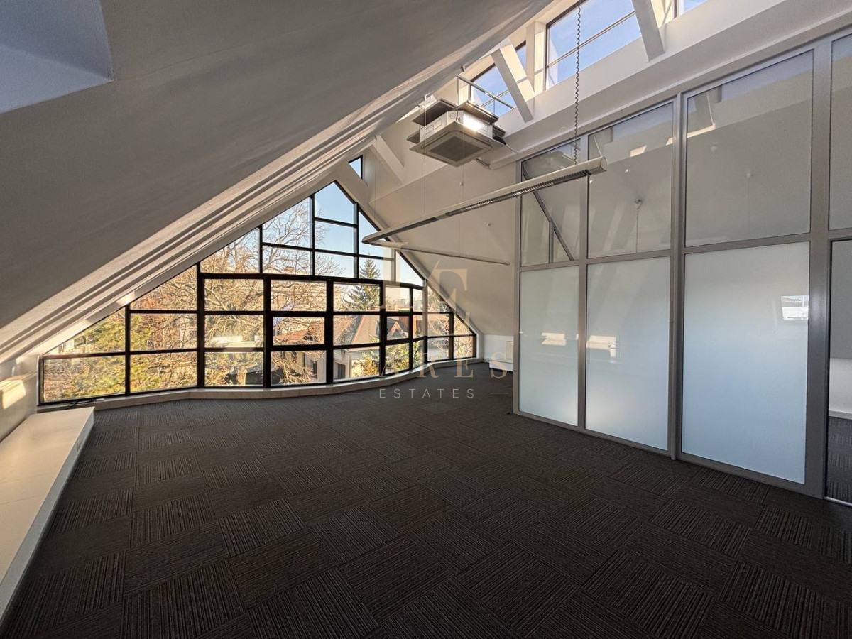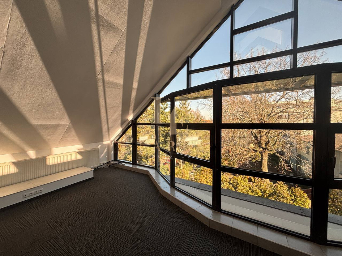 - głównego pomieszczenia biurowego - 54 m² z dużymi panoramicznymi oknami i widokiem na zieleń