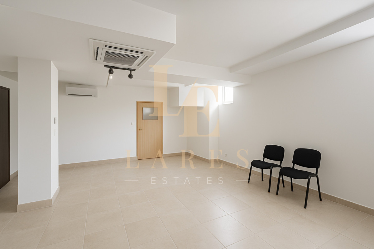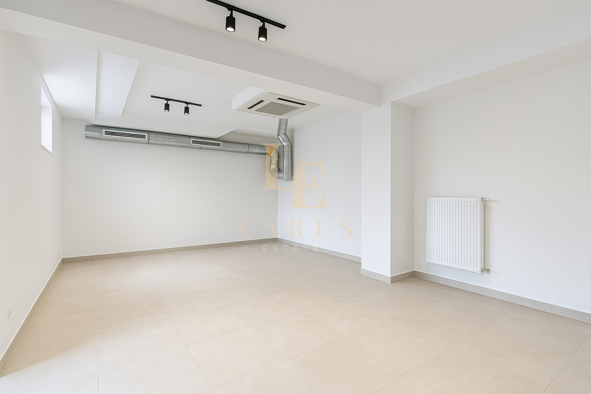 Poziom -1 z oknami przy suficie - zapewnia dostęp naturalnego światła i komfort pracy.