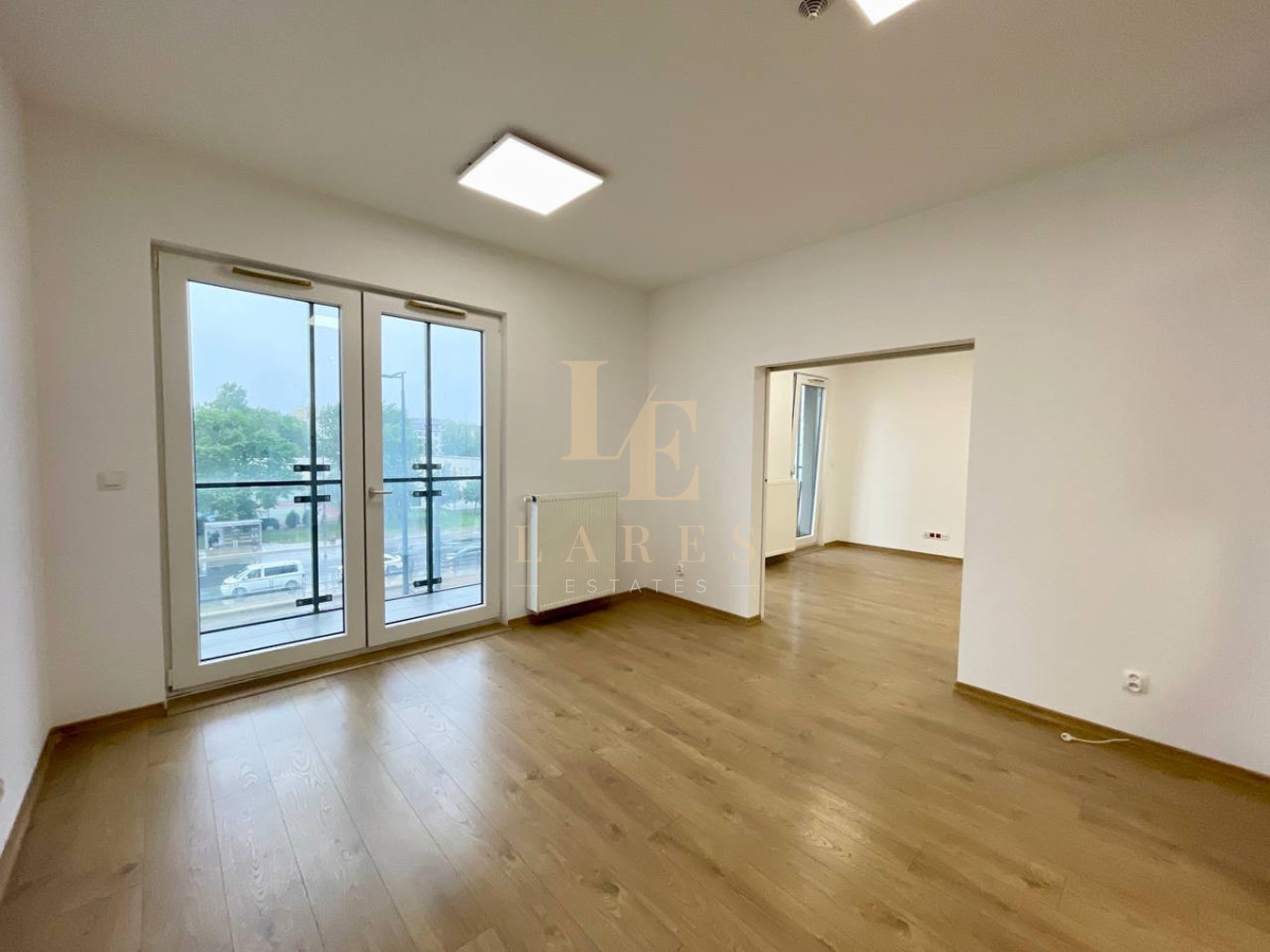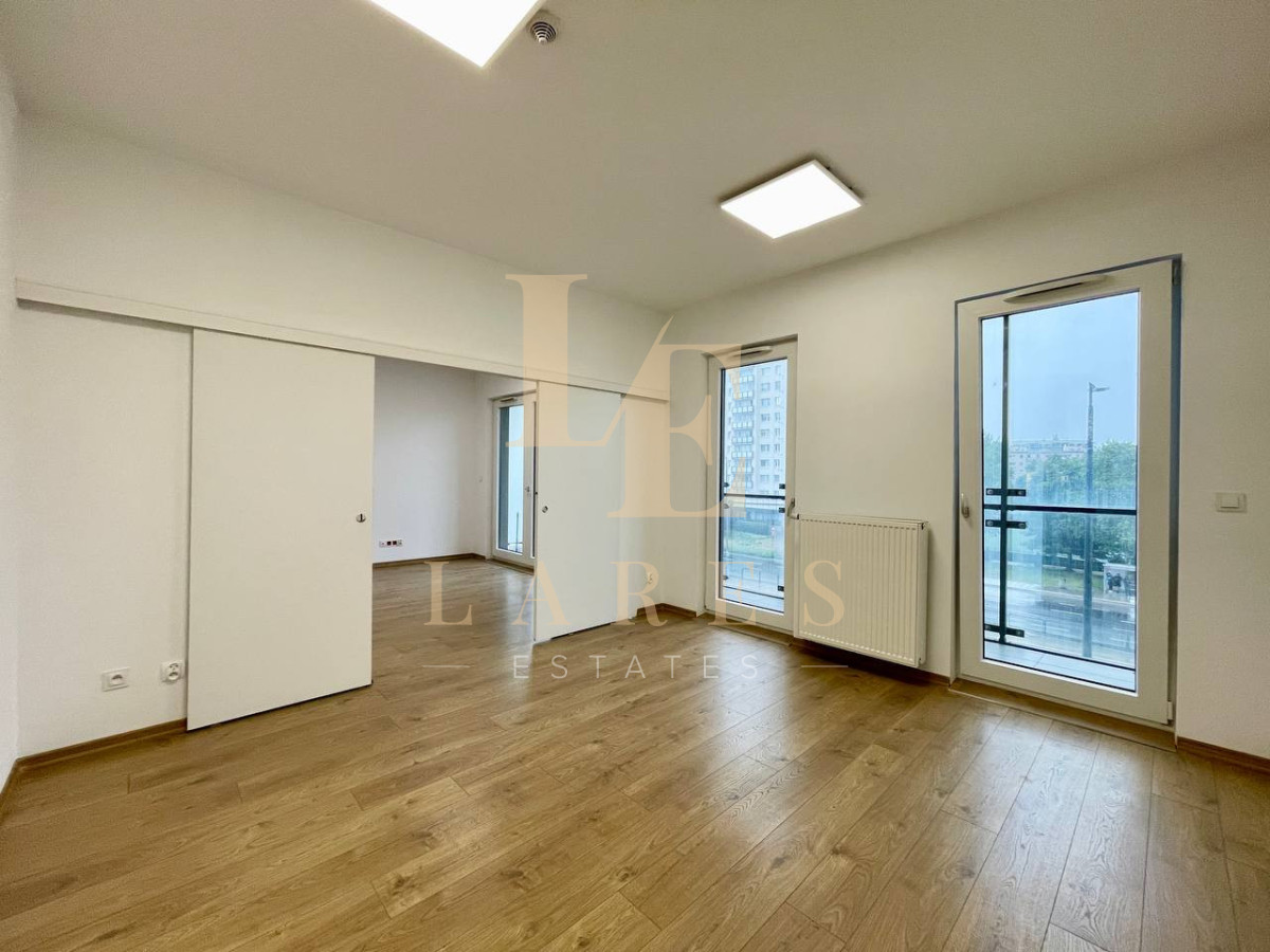 Do wynajęcia lokal usługowy o powierzchni 44 m², położony na drugim piętrze nowoczesnego apartamentowca na warszawskiej Woli.