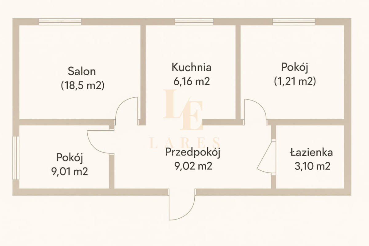 Układ pomieszczeń: jasny salon, dwie sypialnie, oddzielna, widna kuchnia, łazienka z prysznicem i WC, przedpokój z zabudowanymi szafami.