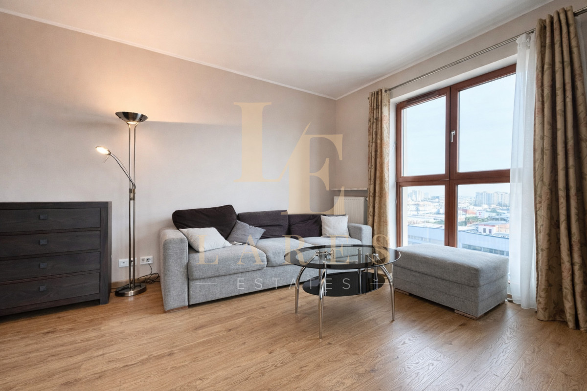 Apartament jest przestronny i bardzo dobrze doświetlony — ekspozycja na stronę południową zapewnia dużą ilość naturalnego światła przez cały dzień.