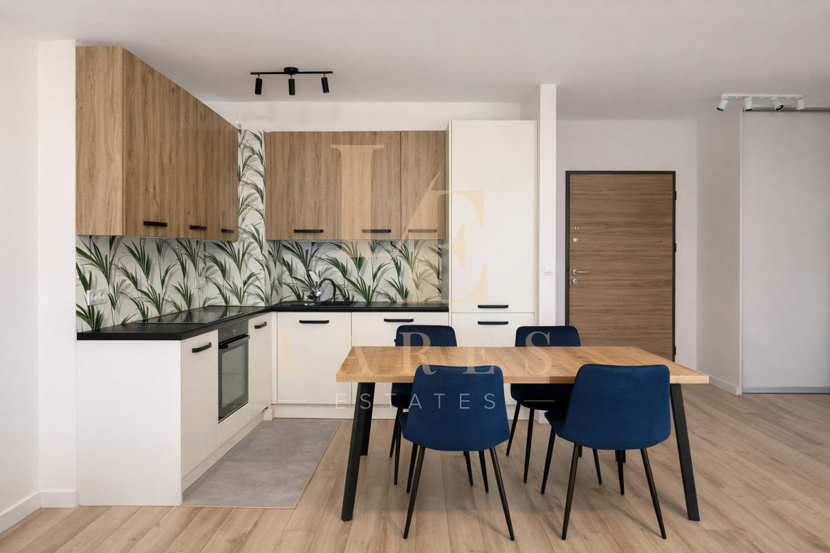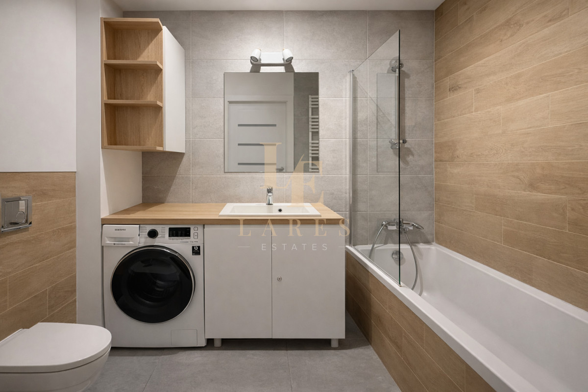 Mieszkanie składa się z sypialni, salonu z aneksem kuchennym, łazienki z wanną oraz balkonu