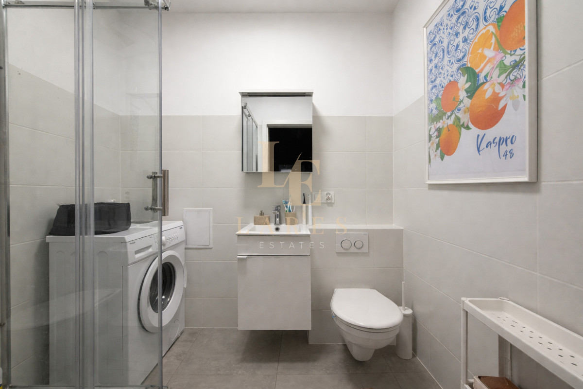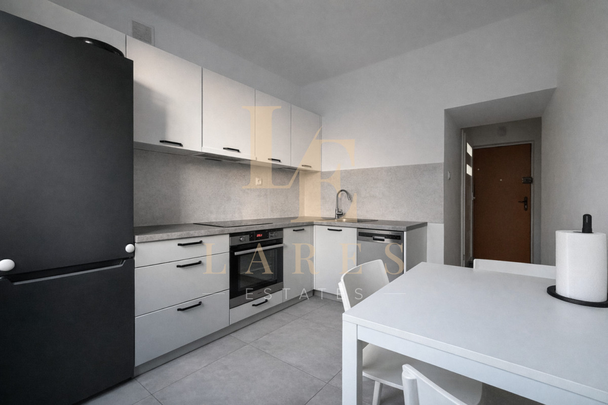 Kuchnia jest oddzielna i w pełni wyposażona (lodówka, piekarnik, płyta, zmywarka), co umożliwia wygodne codzienne funkcjonowanie. Łazienka z prysznicem oraz pralką.