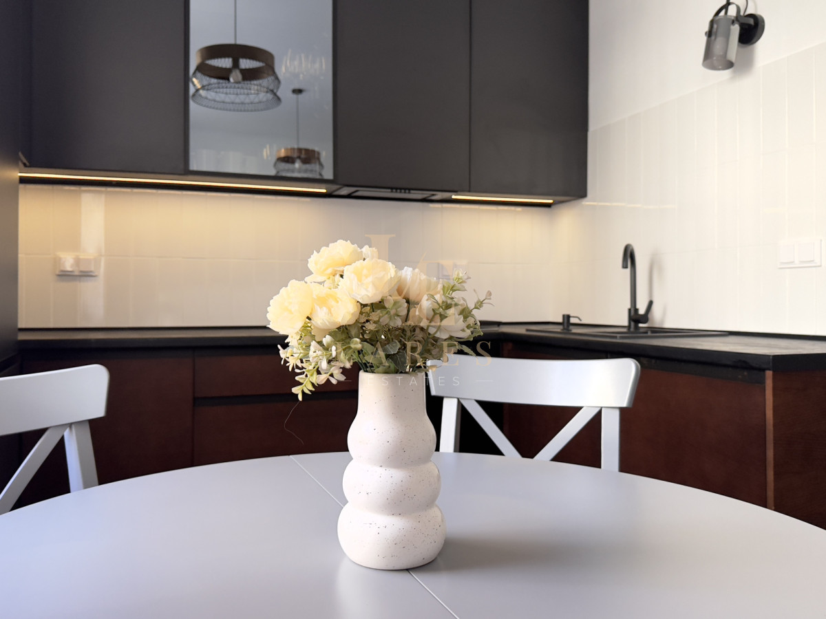 Mieszkanie zostało zaprojektowane z wyjątkową dbałością o detale przez architekta wnętrz - połączenie stylu klasycznego z nowoczesną funkcjonalnością: