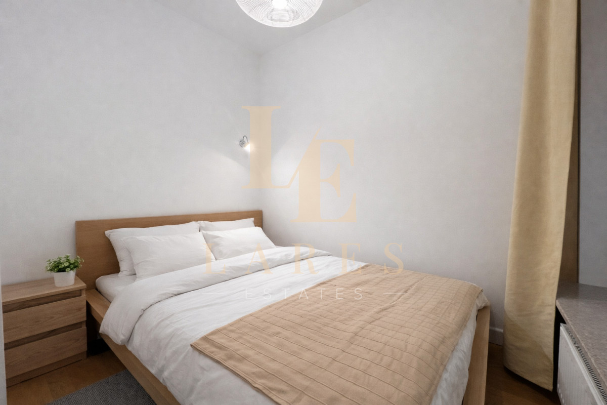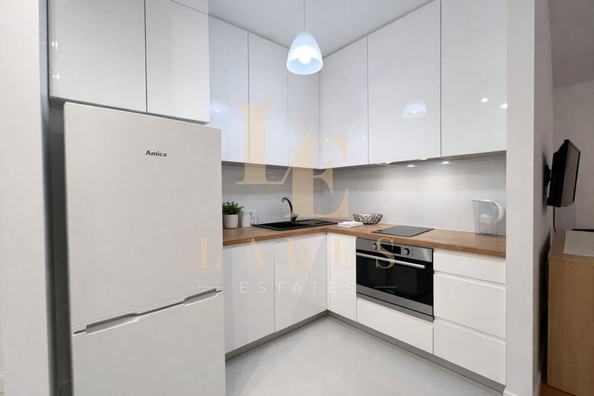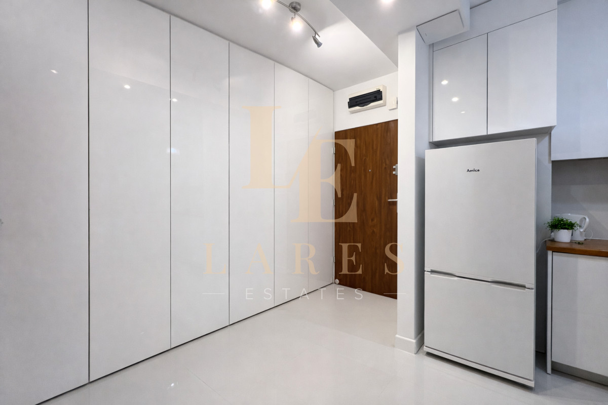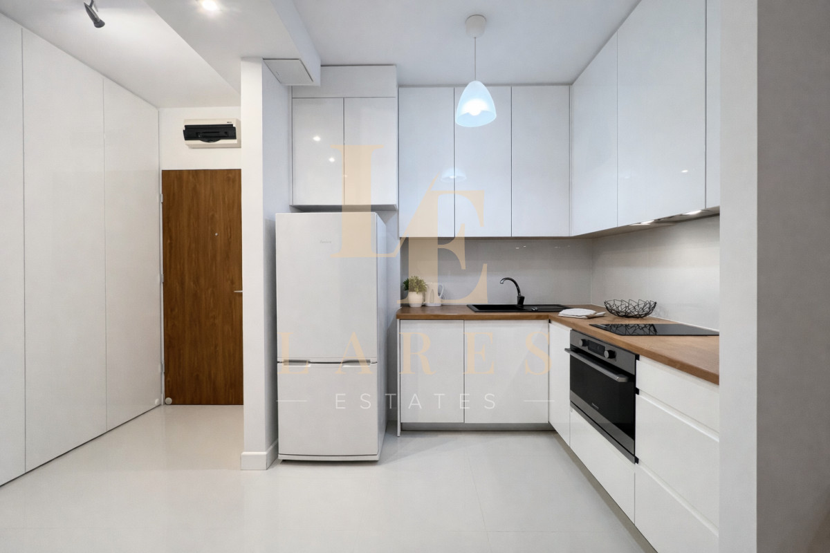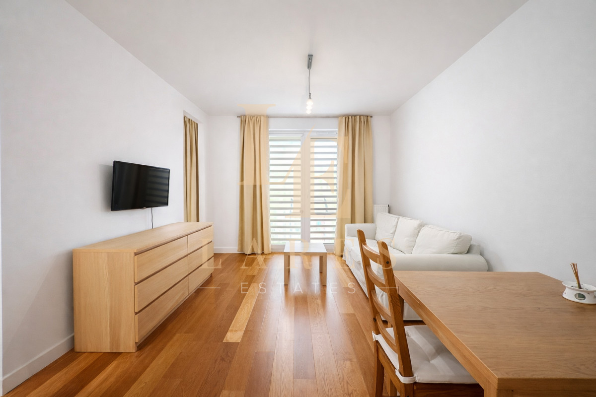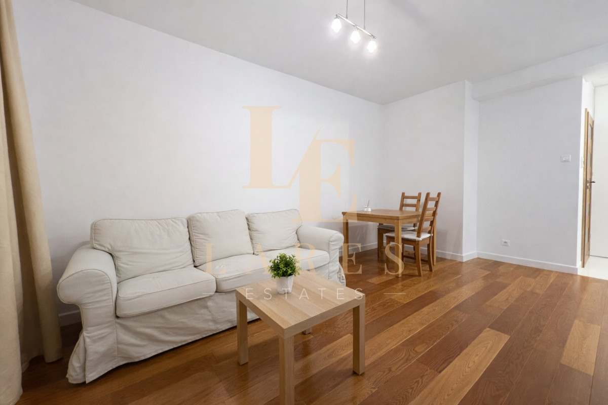 Nowoczesne, w pełni wyposażone mieszkanie z balkonem, położone na strzeżonym osiedlu w sercu Mokotowa — tuż obok centrum biznesowego.