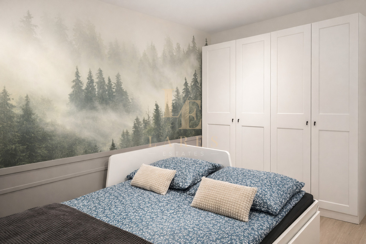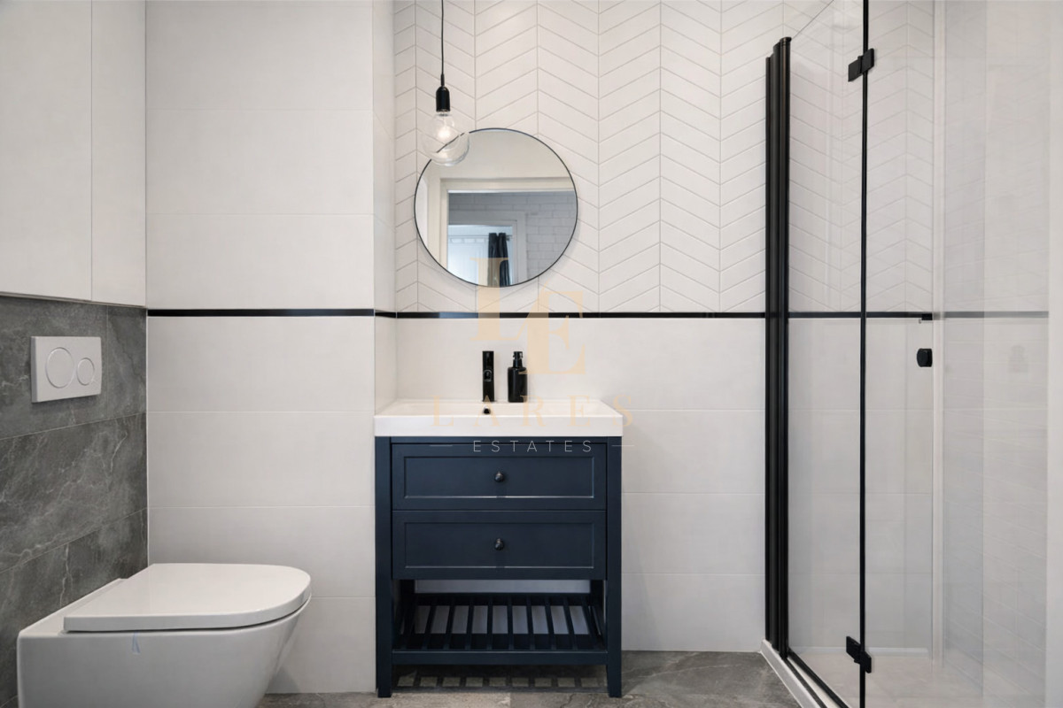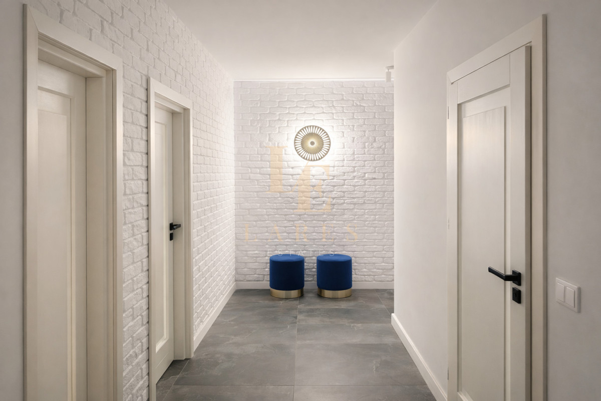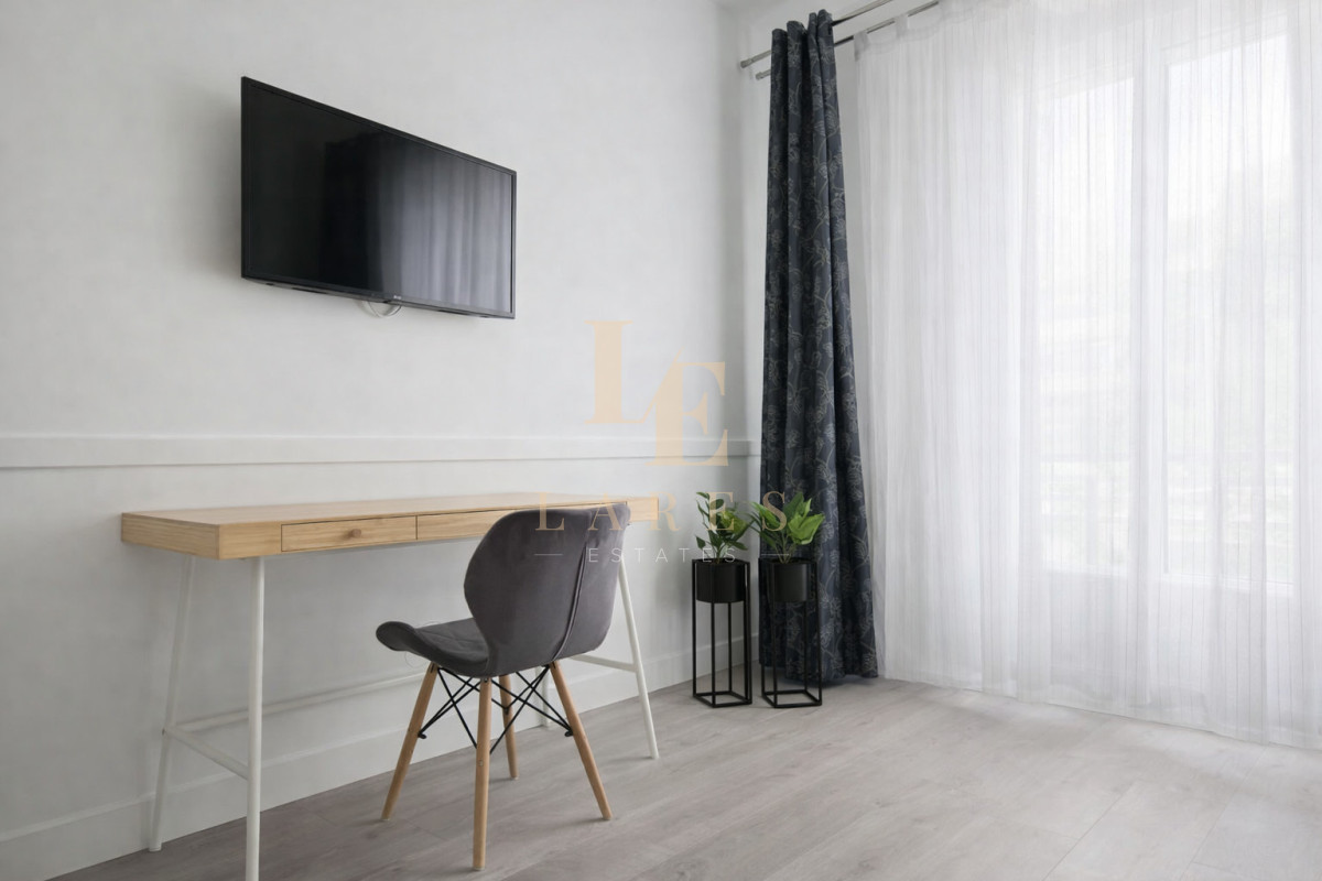 Mieszkanie jest przestronne, wykończone w wysokim standardzie i z dbałością o szczegóły. Wyposażone w niezbędne sprzęty AGD i RTV.