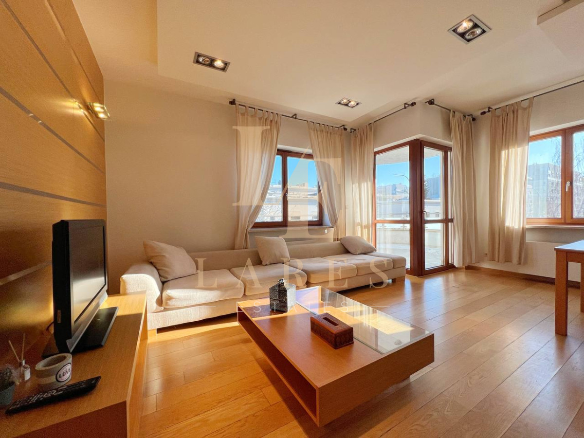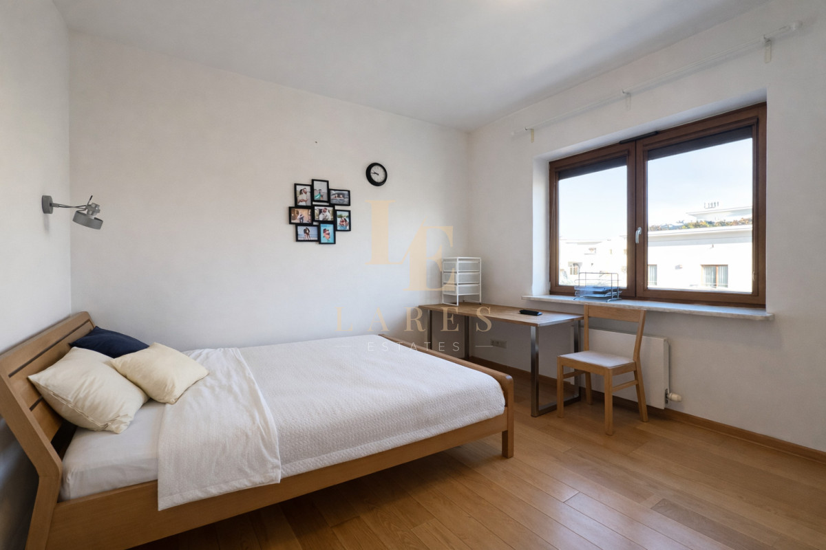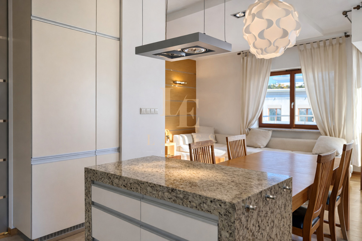 Do wynajęcia jasny, przestronny i elegancki 3-pokojowy apartament o powierzchni 90 m², położony na 1. piętrze kameralnego, trzypiętrowego budynku na prestiżowym osiedlu Marina Mokotów przy ul. Fregaty 2.