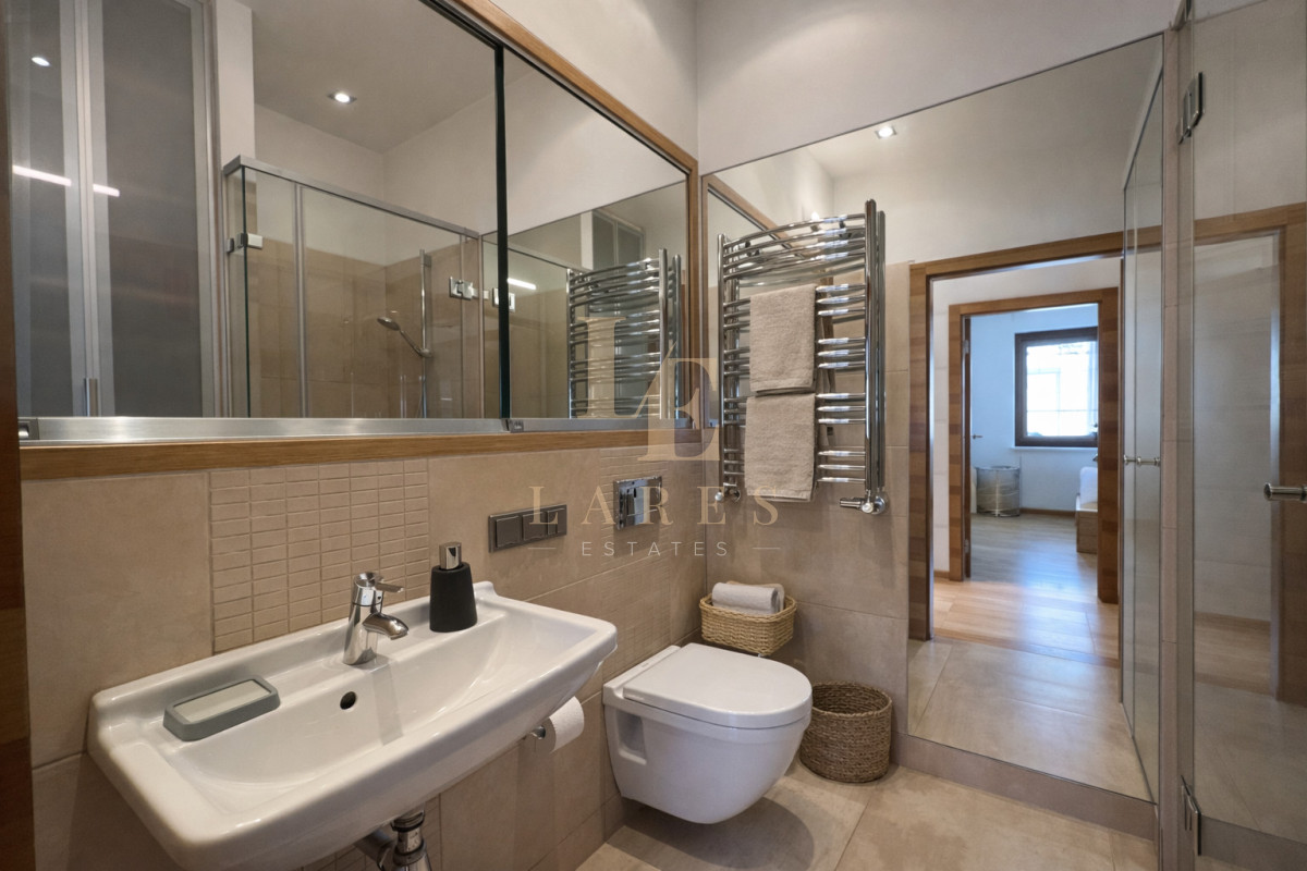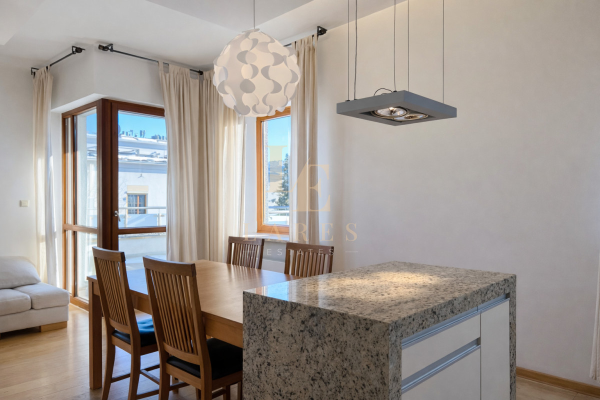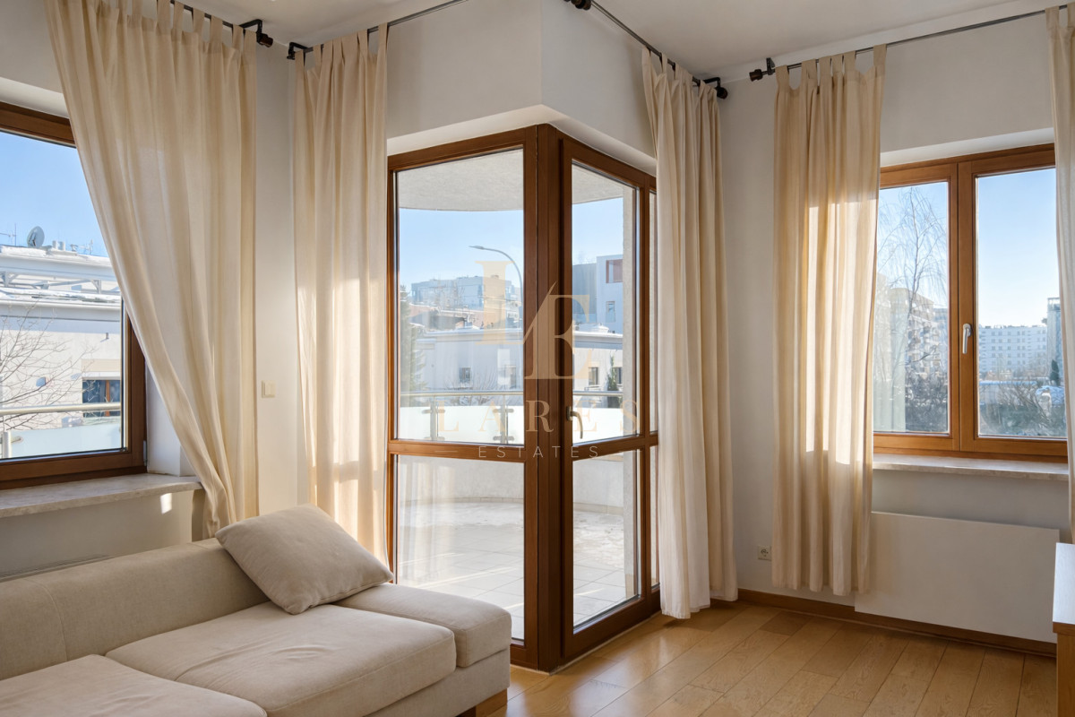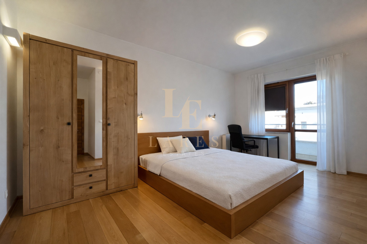 Do wynajęcia jasny, przestronny i elegancki 3-pokojowy apartament o powierzchni 90 m², położony na 1. piętrze kameralnego, trzypiętrowego budynku na prestiżowym osiedlu Marina Mokotów przy ul. Fregaty 2.