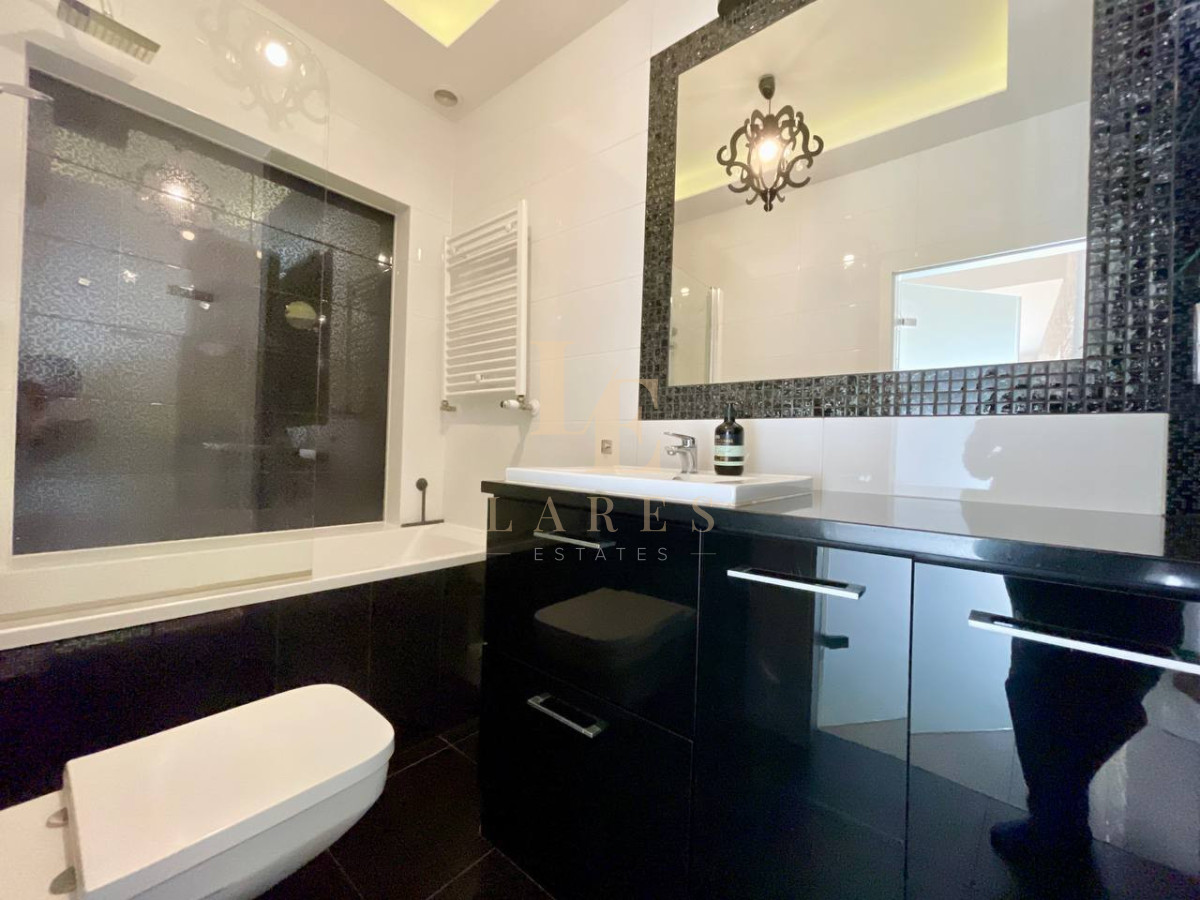 Mieszkanie znajduje się przy ul. Bluszczańskiej na Mokotowie — w spokojnej, zielonej części dzielnicy, idealnej dla osób ceniących komfort i wysoki standard życia. Okolica wyróżnia się kameralną zabudową oraz bliskością terenów zielonych i spacerowych wzdłuż Wisły, doskonałych do rekreacji i aktywnego wypoczynku. Lokalizacja zapewnia bardzo dobrą komunikację z centrum Warszawy oraz innymi dzielnicami miasta dzięki licznym liniom autobusowym i szybkiemu dostępowi do głównych arterii. W pobliżu znajdują się sklepy spożywcze, supermarkety, kawiarnie, restauracje, apteki, punkty usługowe, a także szkoły, przedszkola i obiekty sportowe.