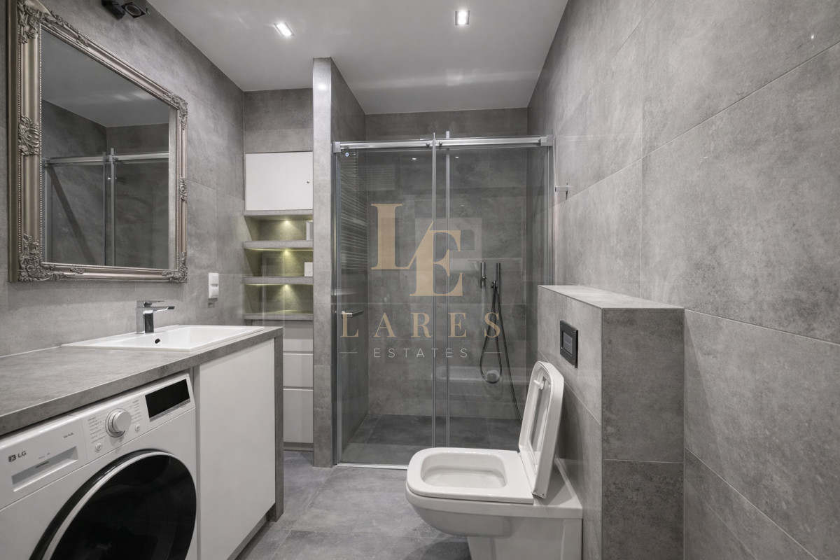 Łazienka: nowoczesna i komfortowa, wyposażona w pralko-suszarkę.