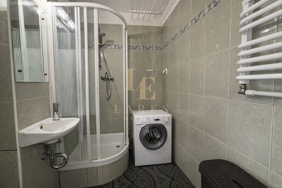 Łazienka: prysznic, pralka.