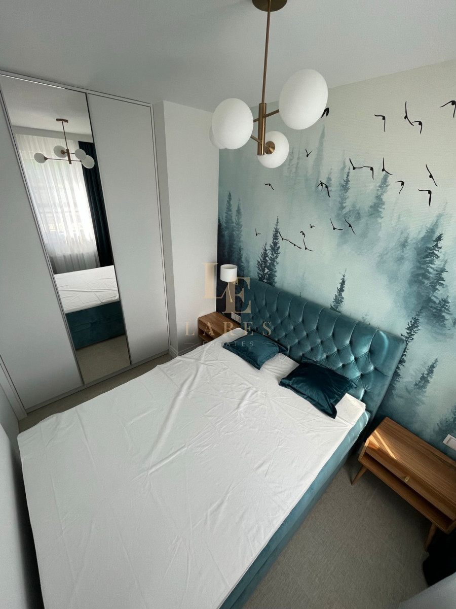 Mieszkanie jest przestronne, wykończone w luksusowym standardzie, a także w pełni umeblowane oraz wyposażone w niezbędne sprzęty AGD.