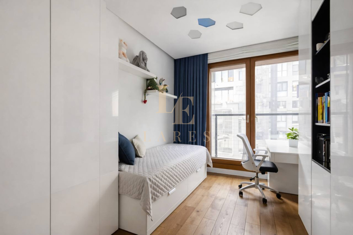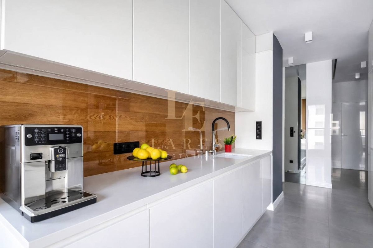 Mieszkanie zostało zaprojektowane z dbałością o detale, jest nowoczesne, komfortowe i w pełni umeblowane. Wyposażone w inteligentny system Smart Home Fibaro umożliwiający sterowanie oświetleniem, temperaturą oraz żaluzjami z poziomu aplikacji.