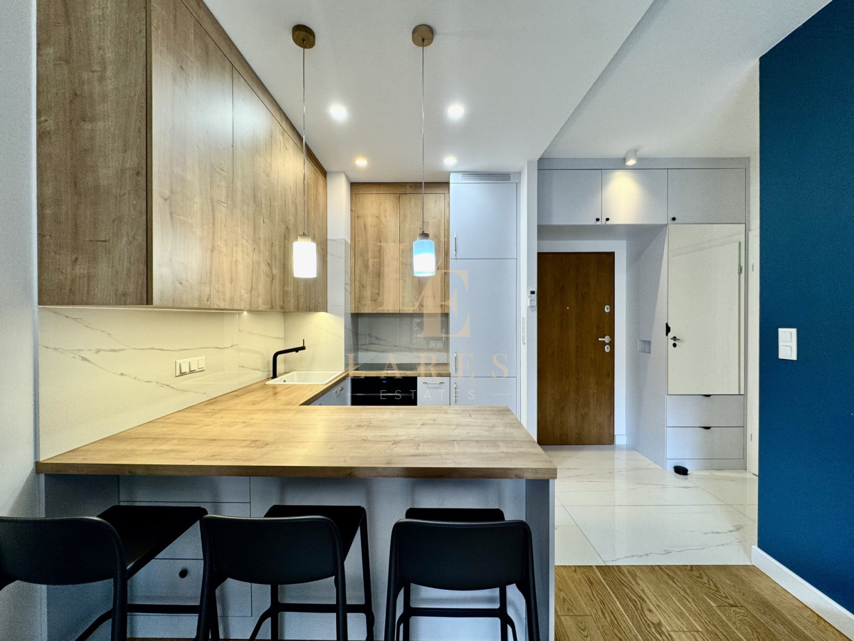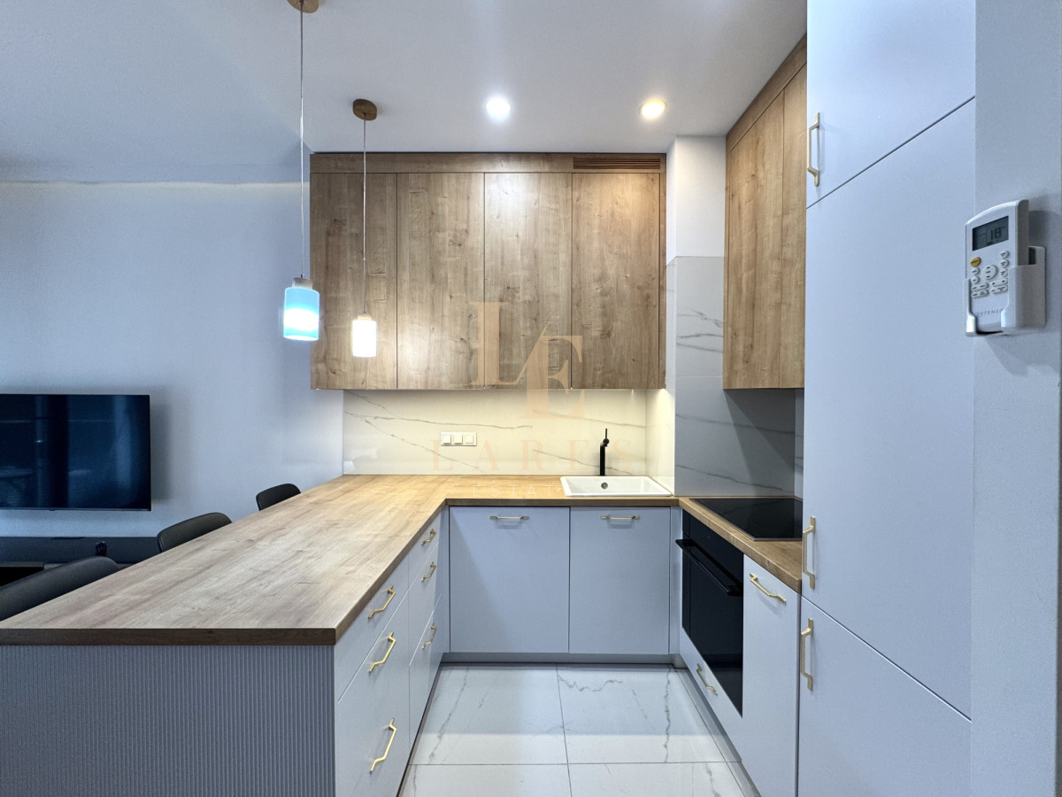 Na wynajem nowoczesne, w pełni wyposażone dwupokojowe mieszkanie o powierzchni 36 m², położone na 1 piętrze w bloku z 2021 roku z windą. Budynek znajduje się na monitorowanym osiedlu z ochroną, co gwarantuje spokój i bezpieczeństwo mieszkańców. Możliwy wynajem 2 miejsc postojowych w garażu podziemnym - dodatkowo płatne.