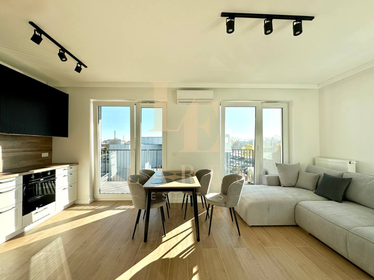 Do wynajęcia nowoczesne, w pełni wyposażone, trzypokojowe mieszkanie o powierzchni 60 m² przy ul. Kotsisa 2 w Warszawie. Lokal znajduje się na 2. piętrze nowego budynku z windą, na spokojnym, kameralnym osiedlu.