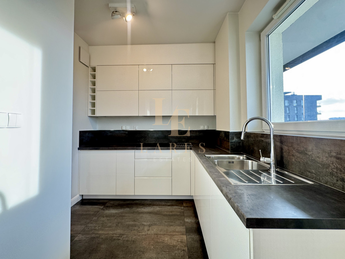 Oferuję nowoczesne mieszkanie o powierzchni 48 m², położone na 8. piętrze budynku z windą i całodobową ochroną, w prestiżowej inwestycji Soho Factory na Pradze-Południe.