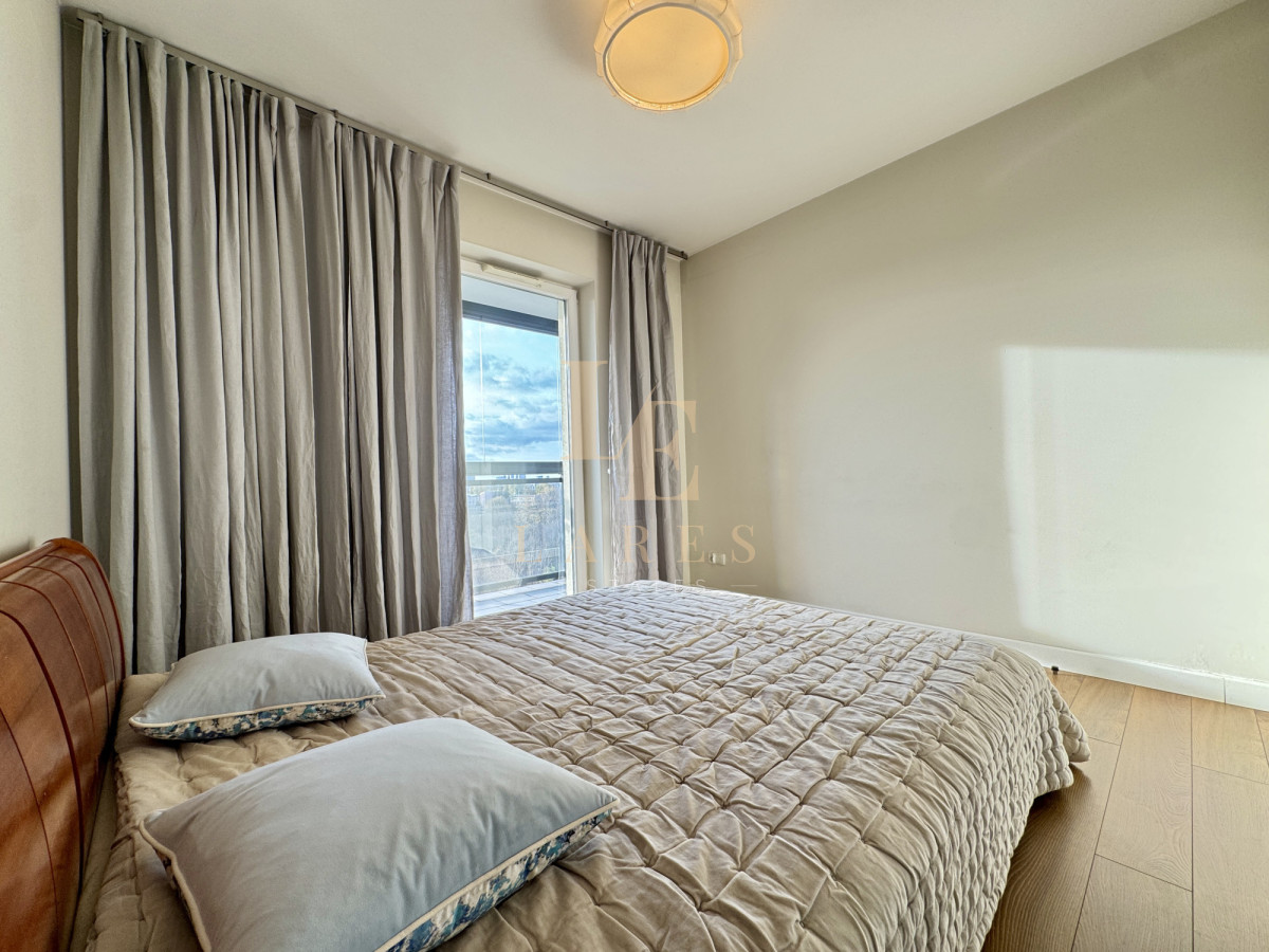 - Sypialnia z dużym łóżkiem i dostępem do loggii