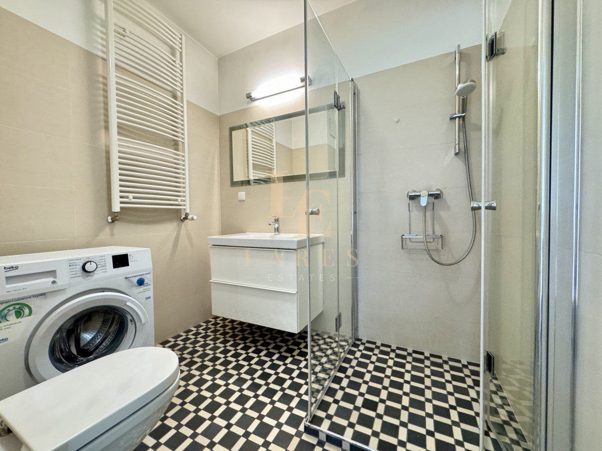 - Przeszklona loggia o powierzchni 12,6 m² biegnie wzdłuż całego mieszkania.