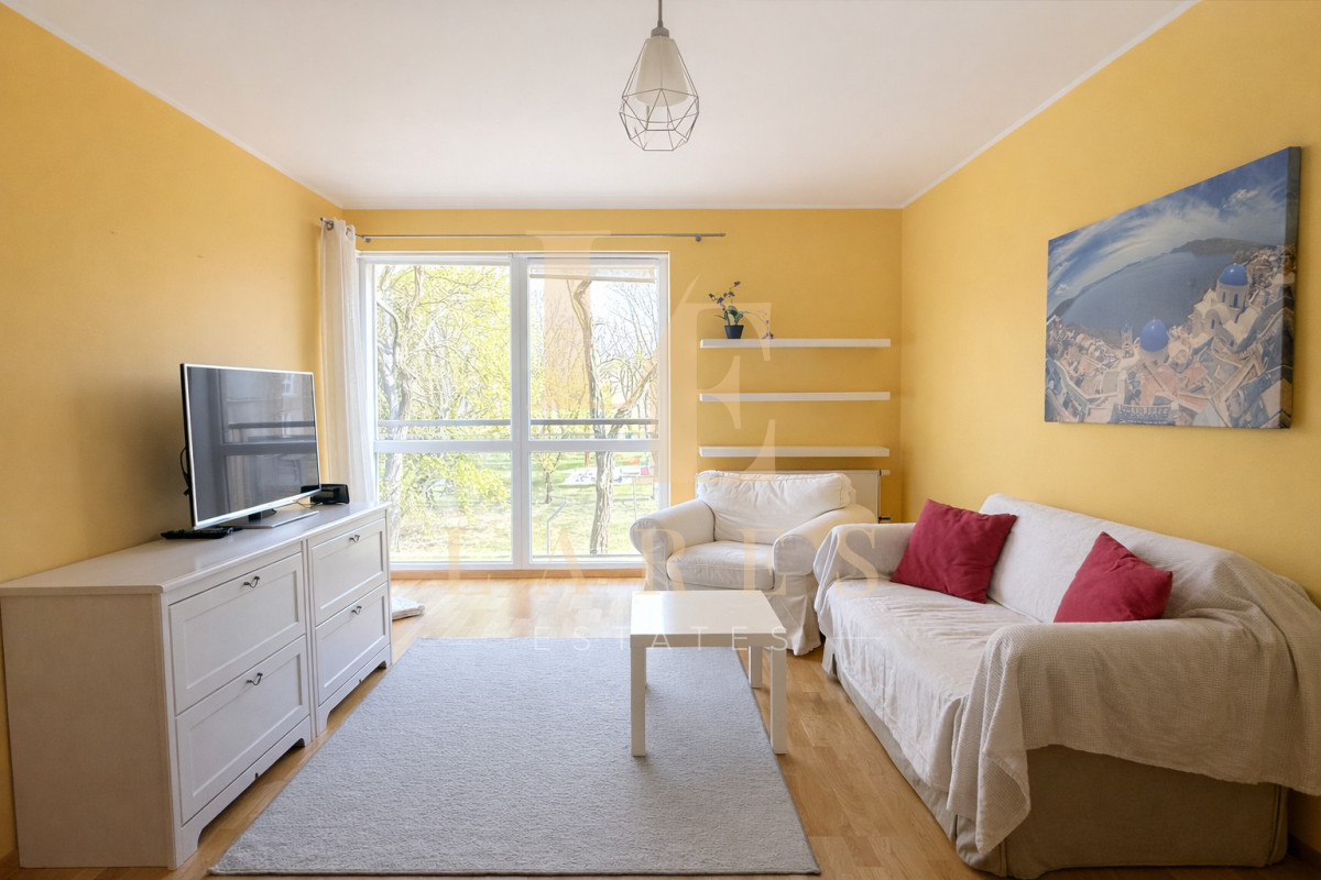 Mieszkanie składa się z sypialni, salonu z aneksem kuchennym, łazienki z wanną oraz balkonu.