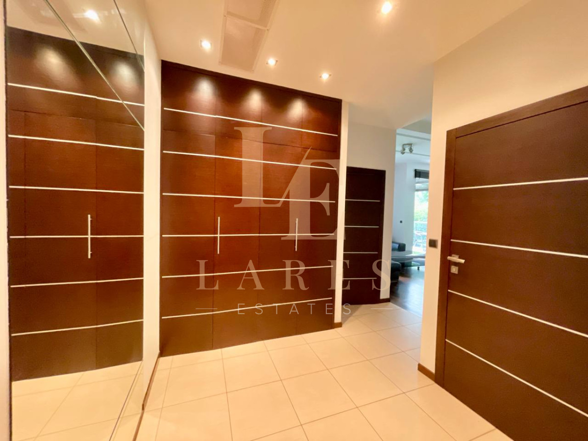 Mieszkanie zostało urządzone z dbałością o detale, z wykorzystaniem wysokiej jakości materiałów. Jasna kolorystyka, nowoczesne oświetlenie i funkcjonalny układ pomieszczeń zapewniają komfort życia.