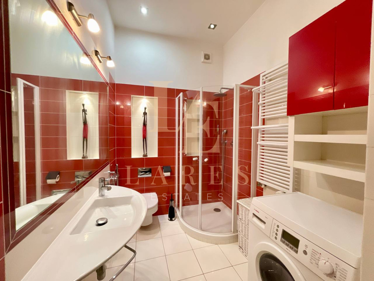 Łazienka: kabina prysznicowa, umywalka, toaleta, pralka z funkcją suszenia