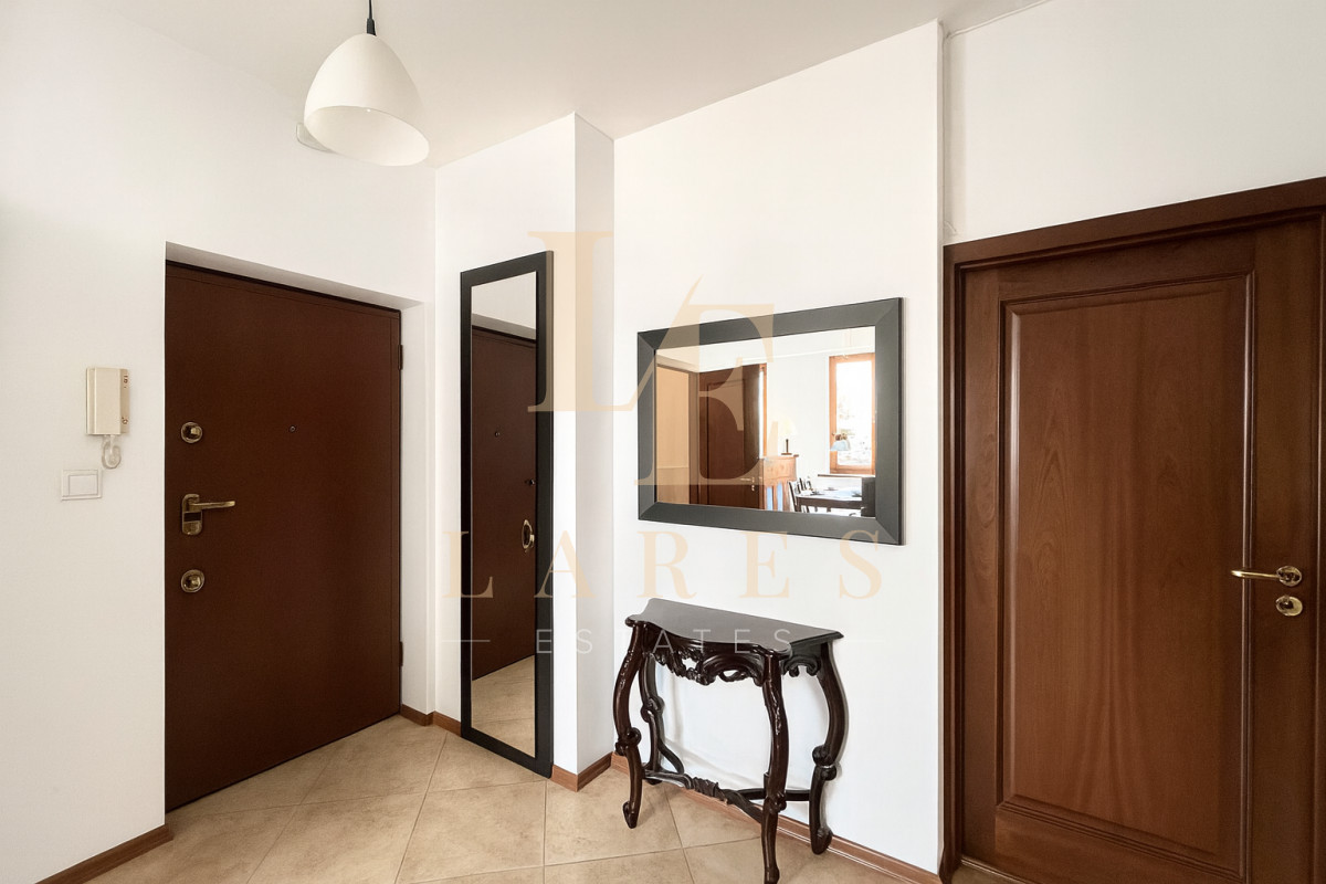 Wnętrze zaprojektowane w klasycznym stylu, z dbałością o funkcjonalność i estetykę, gotowe do zamieszkania bez dodatkowych nakładów.