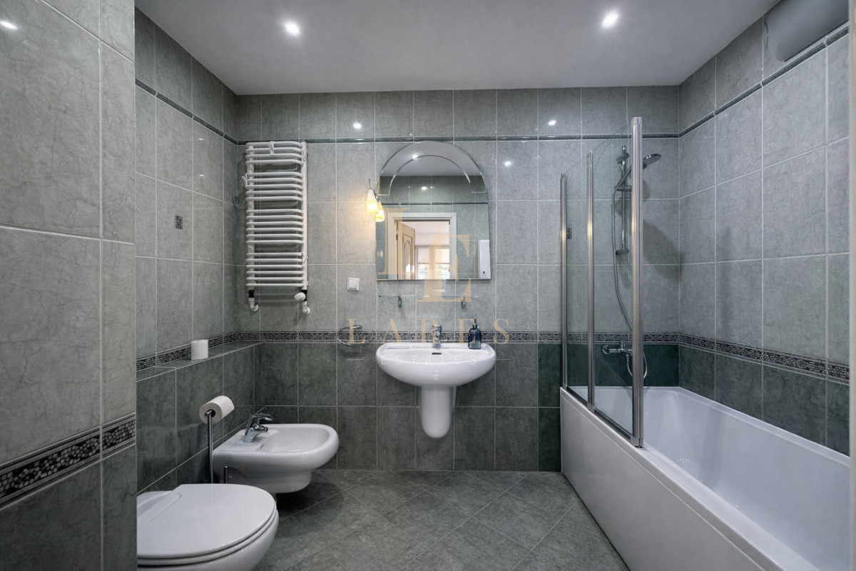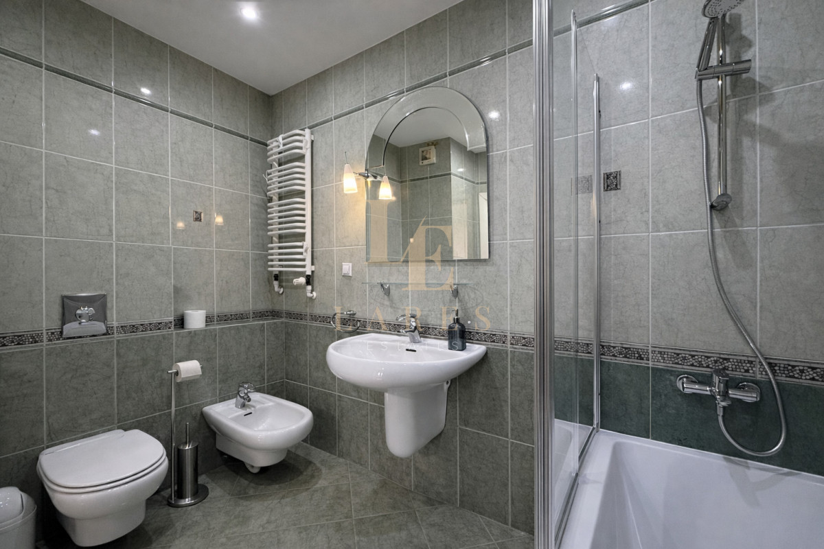 Łazienka 1: wanna z prysznicem, umywalka, toaleta, bidet