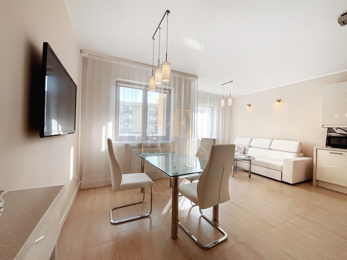Do wynajęcia jasne, nowoczesne mieszkanie o powierzchni 55 m2 na Ursynowie, przy ulicy Franciszka Marii Lanciego 16. Mieszkanie znajduje się na 3 piętrze w zadbanym budynku z windą i balkonem. Osiedle jest strzeżone 24/7, monitorowane i zamknięte, co zapewnia spokój i bezpieczeństwo.