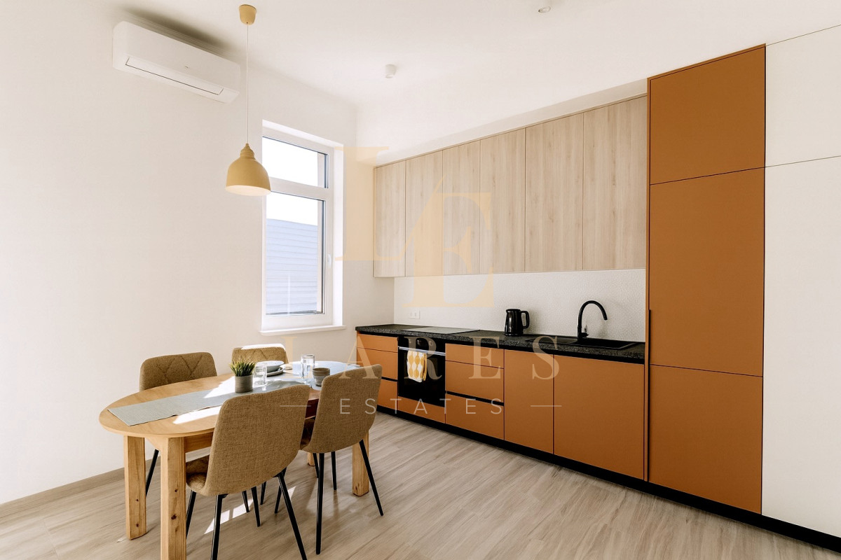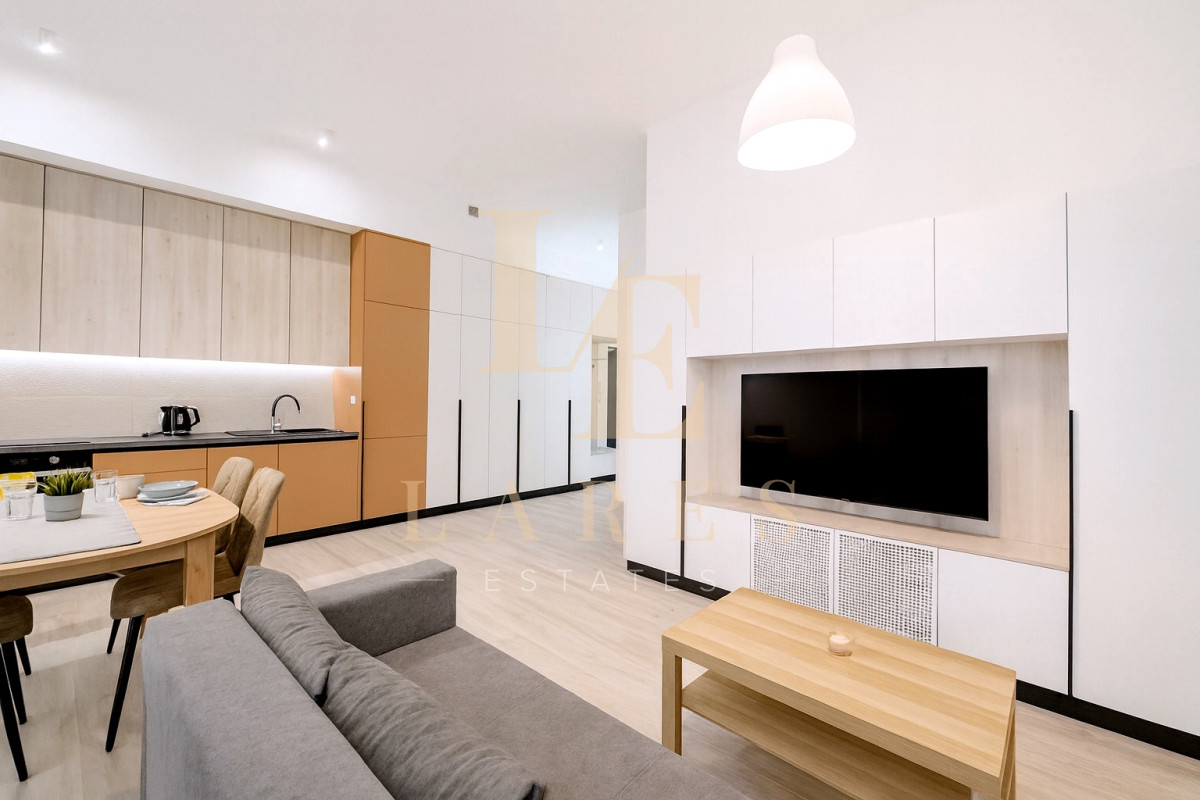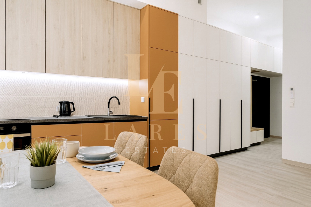 Mieszkanie ma powierzchnię 45 m² i składa się z salonu z aneksem kuchennym, sypialni, łazienki oraz balkonu. Wysokie sufity (3 m) oraz duże okna zapewniają przestrzeń i doskonałe doświetlenie wnętrza.
