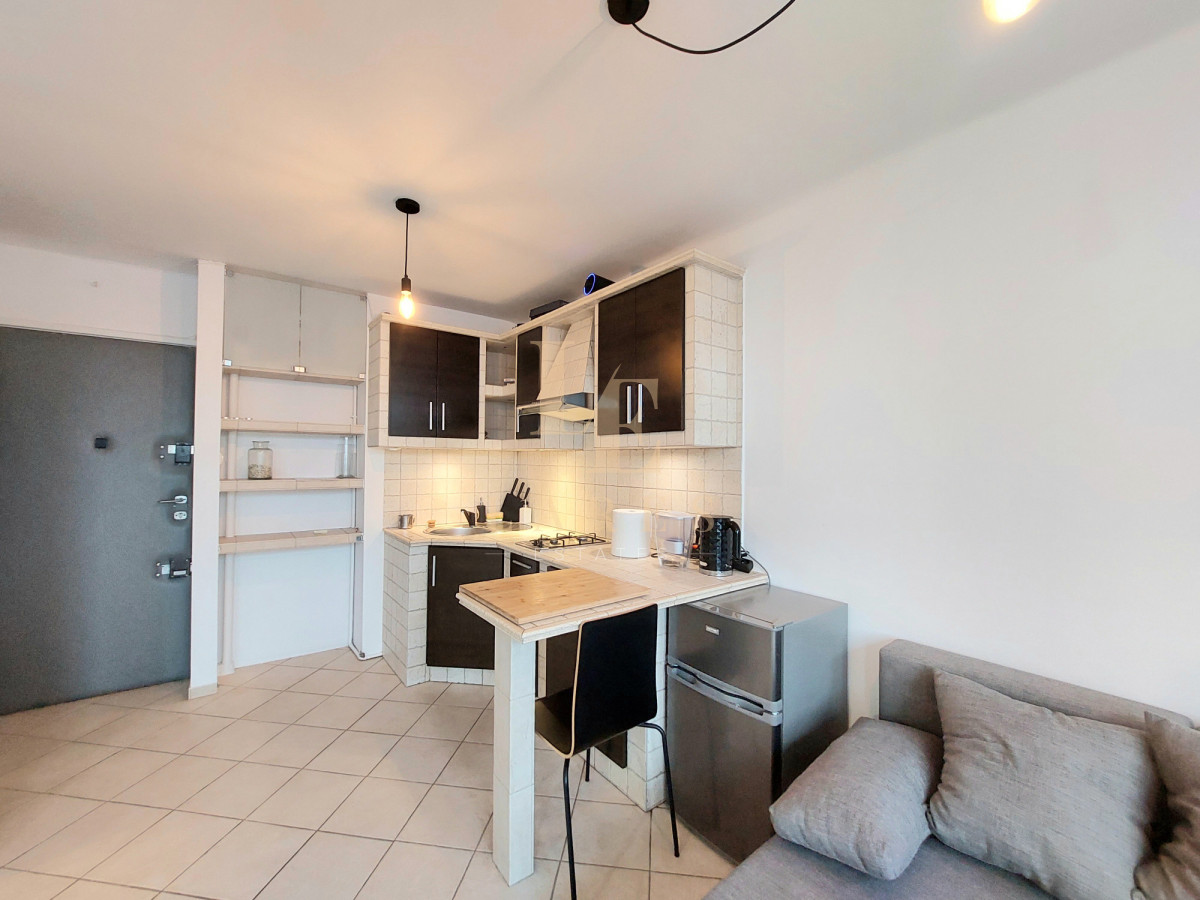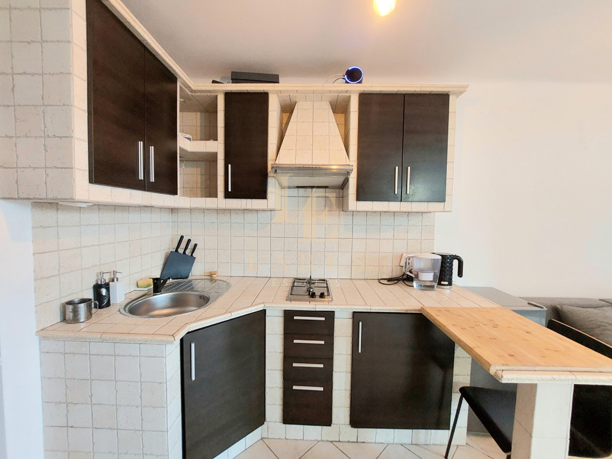 Mieszkanie składa się z salonu z aneksem kuchennym, oraz łazienki z wanną.