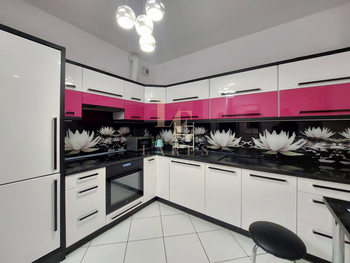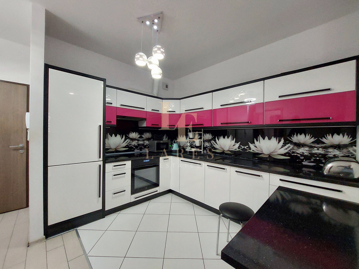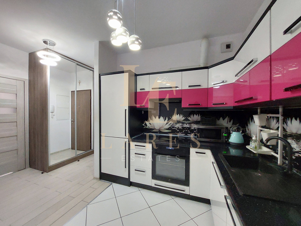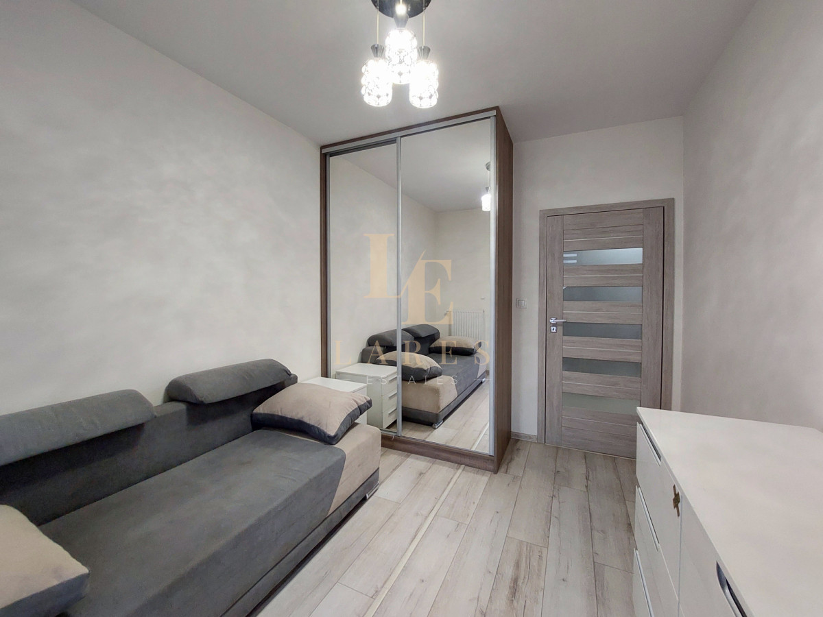 Mieszkanie składa się z dużego salonu, osobnej kuchni, sypialni, łazienki z prysznicem, przedpokoju oraz balkonu. Nieruchomość jest w pełni umeblowana oraz wyposażona w sprzęt RTV i AGD.