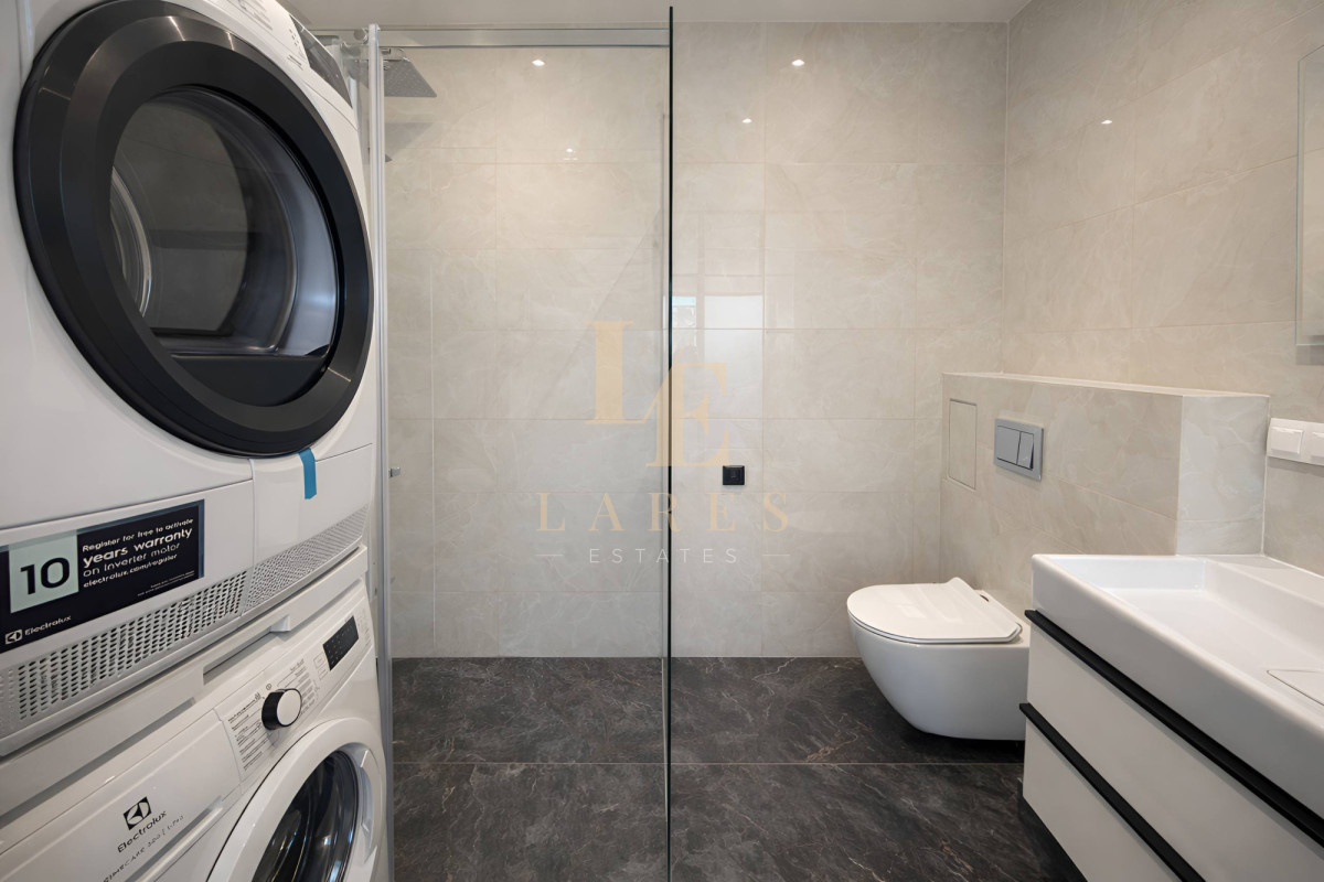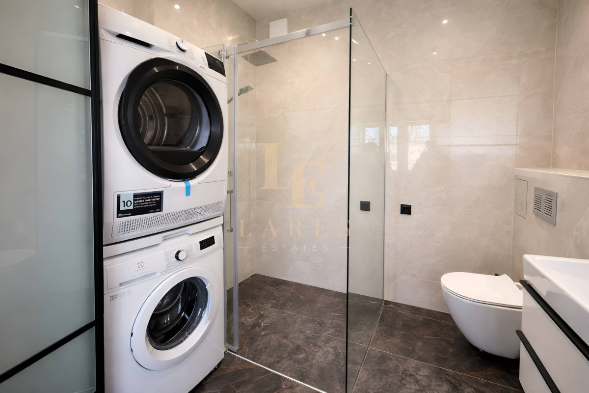 • przestronna łazienka z kabiną prysznicową, pralką i suszarką