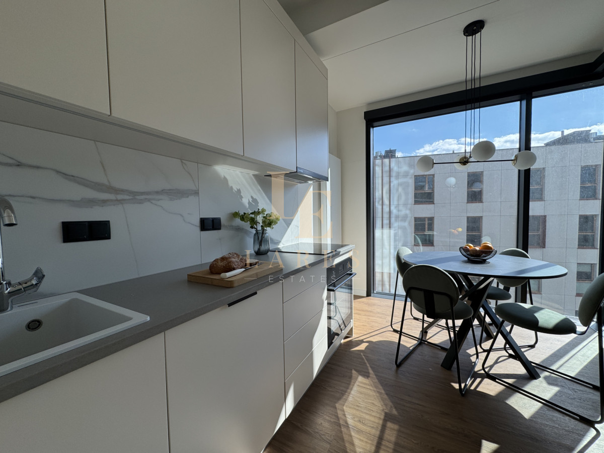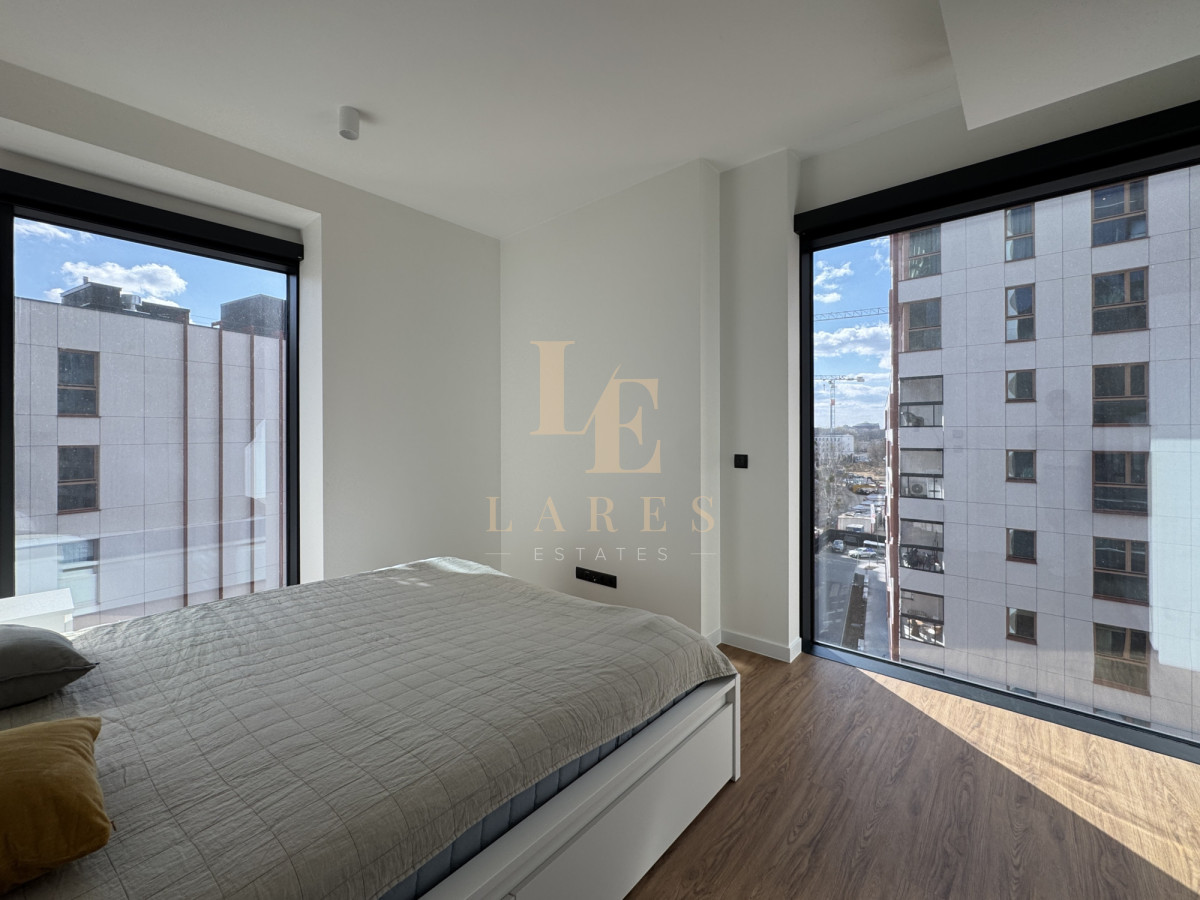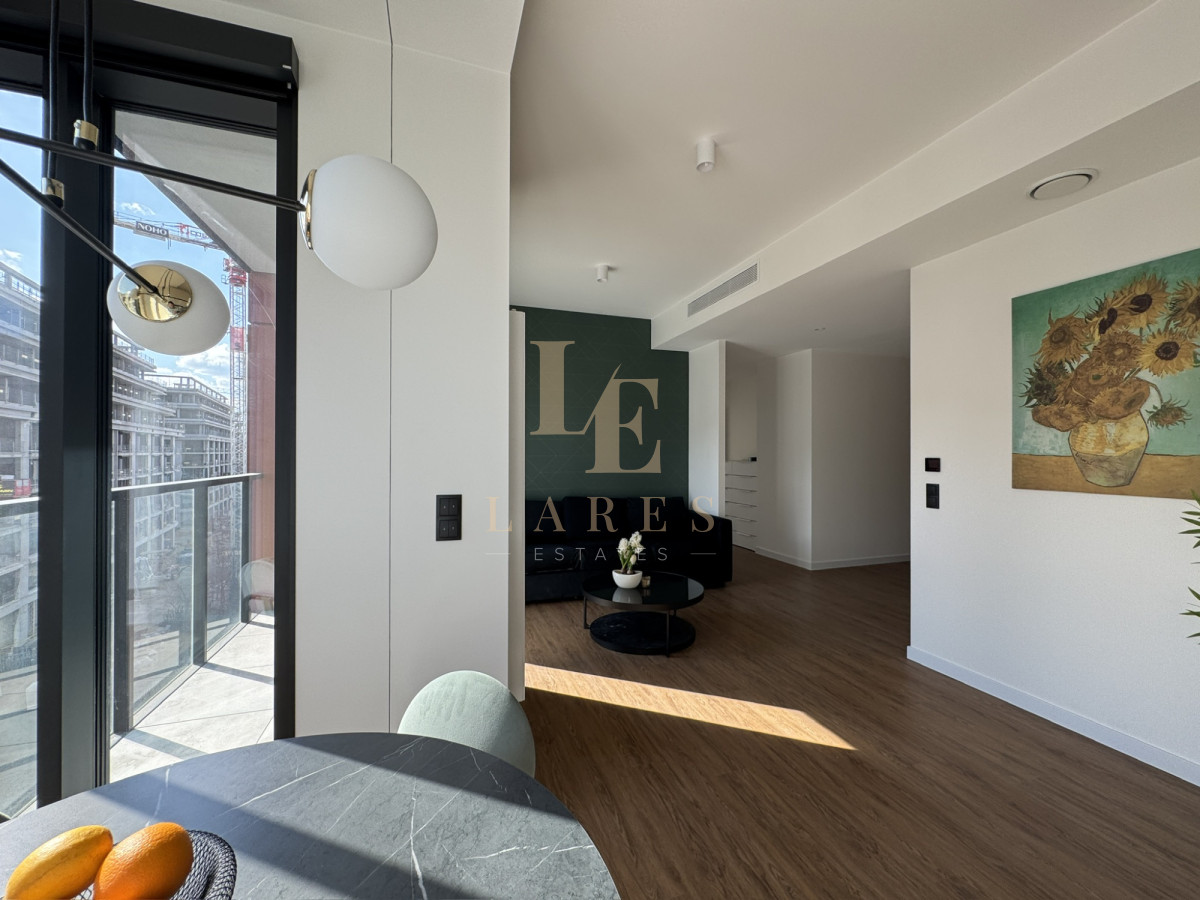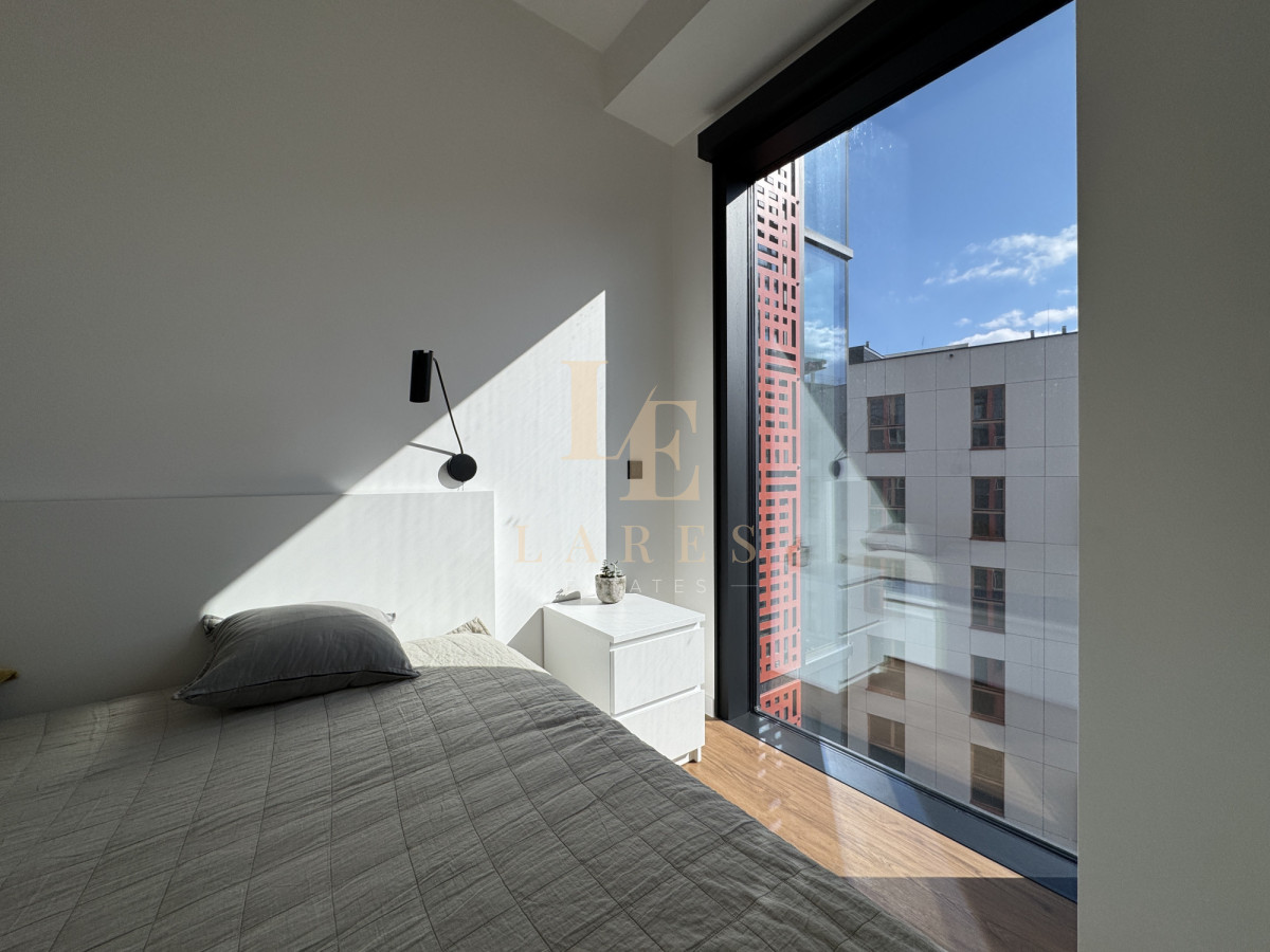 Apartament położony jest na 6. piętrze nowoczesnego, 29-piętrowego wieżowca i oferuje komfortową przestrzeń do życia w samym centrum biznesowej części stolicy.