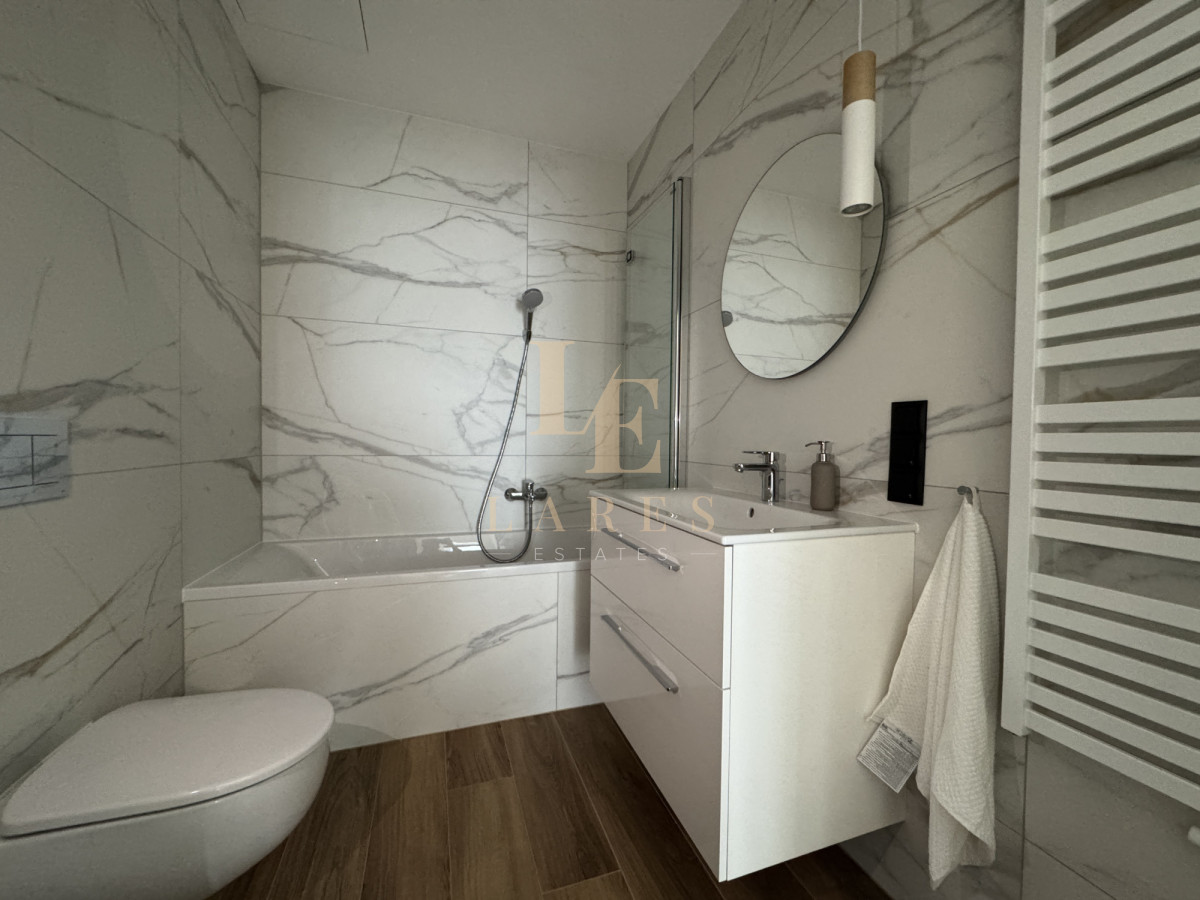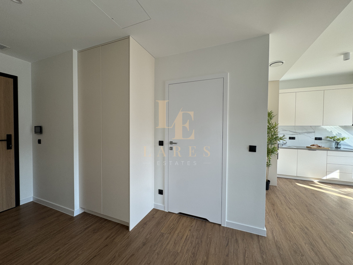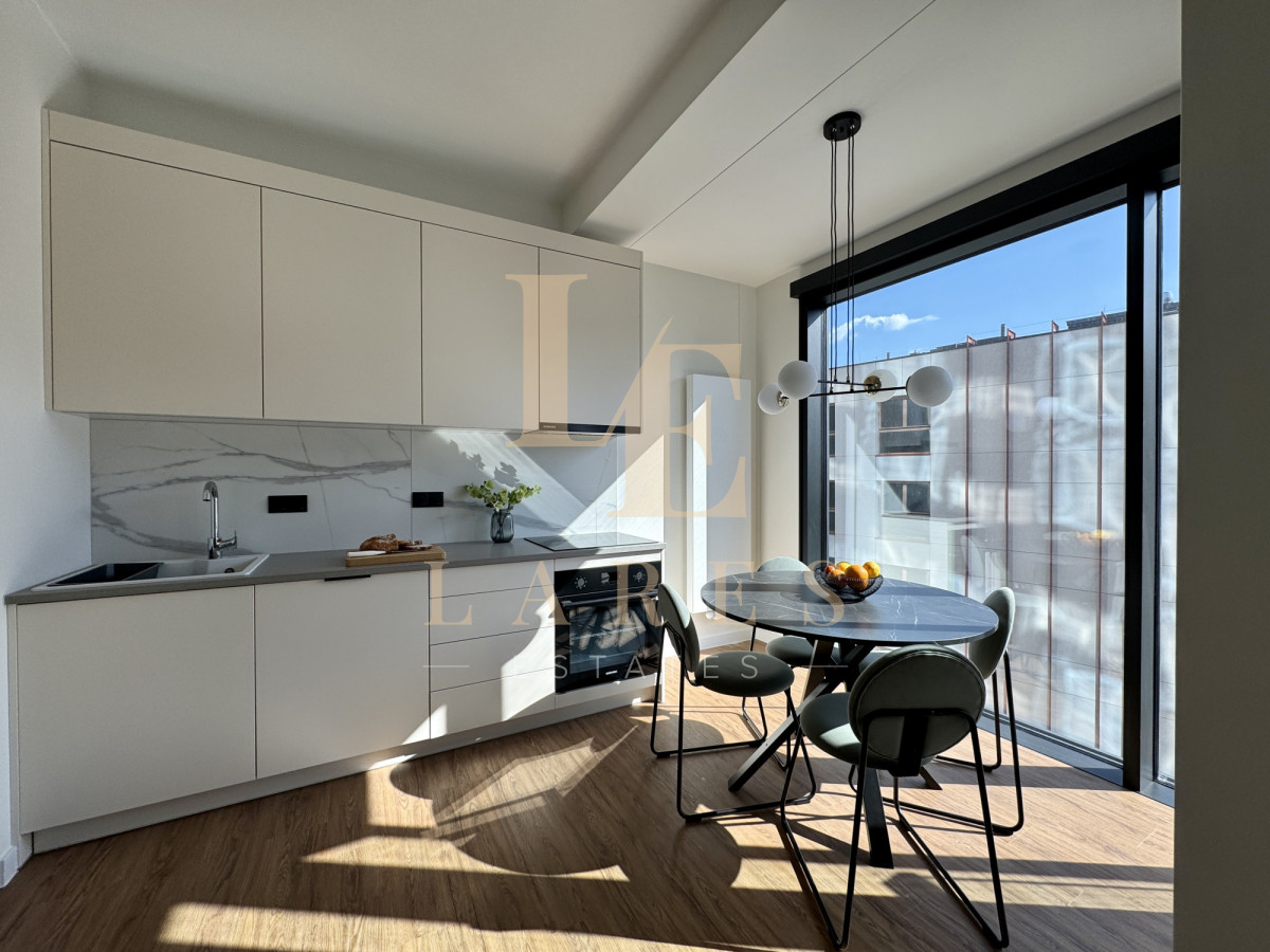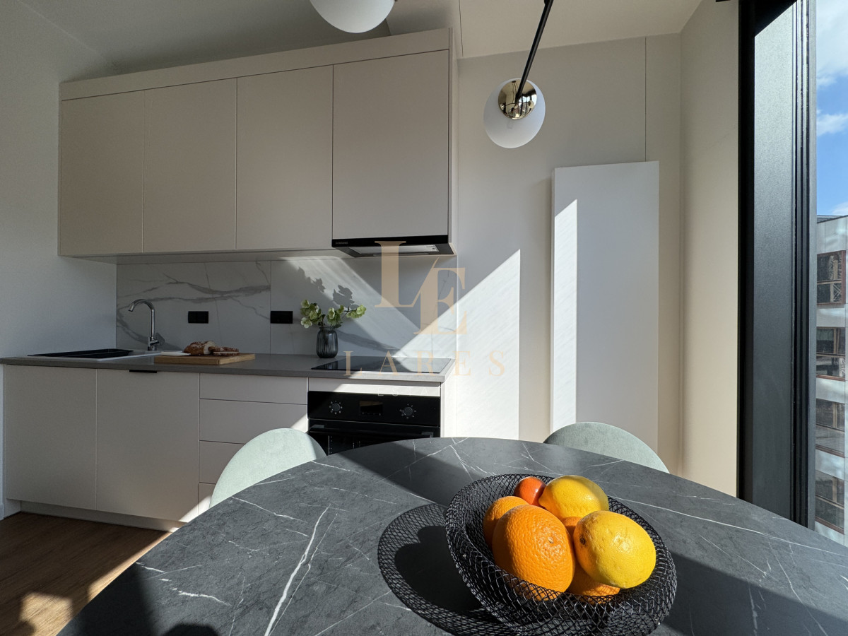 Apartament położony jest na 6. piętrze nowoczesnego, 29-piętrowego wieżowca i oferuje komfortową przestrzeń do życia w samym centrum biznesowej części stolicy.