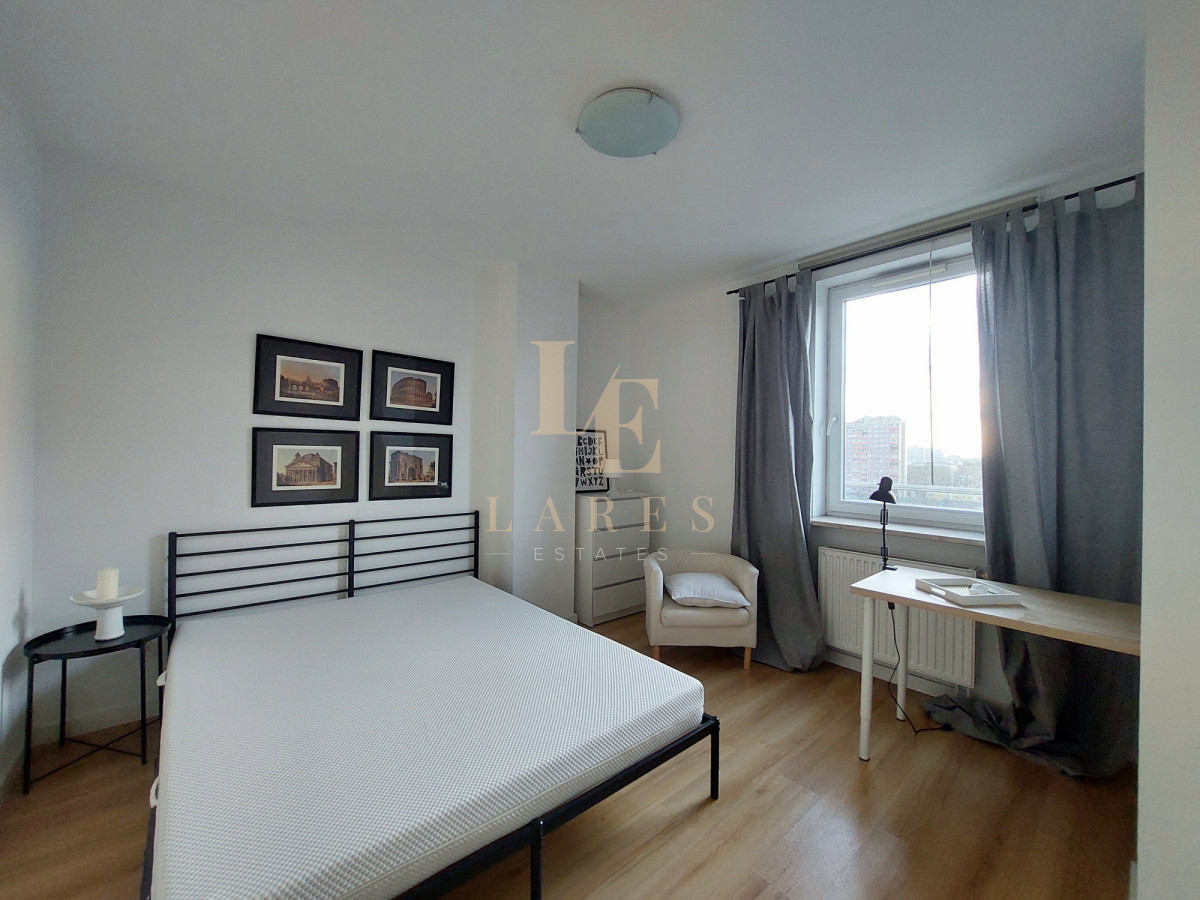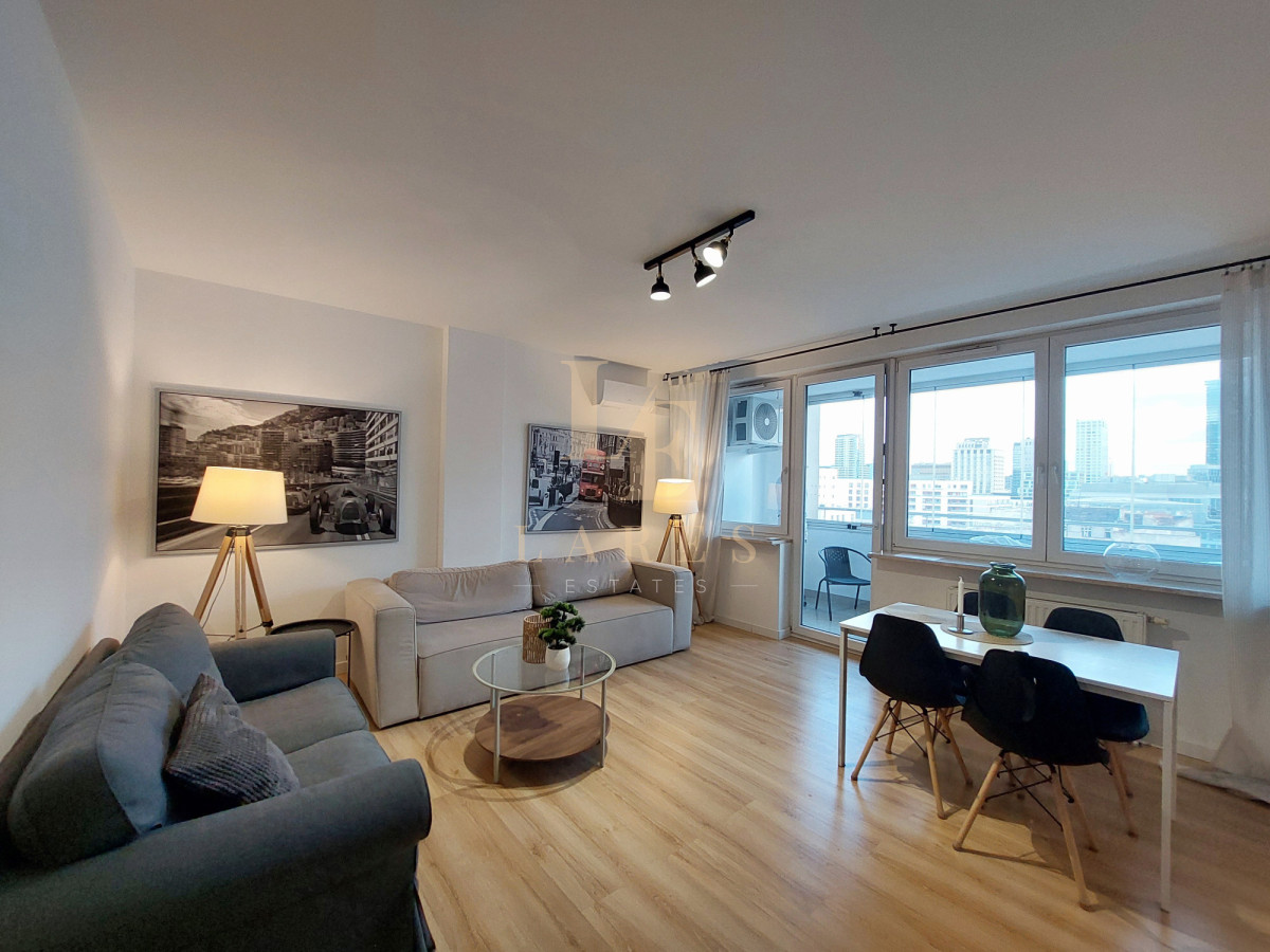 Do wynajęcia słoneczne, klimatyzowane trzypokojowe mieszkanie o powierzchni 80 m² położone na 9. piętrze w apartamentowcu z 2007 roku przy ul. Leszno, Wola.