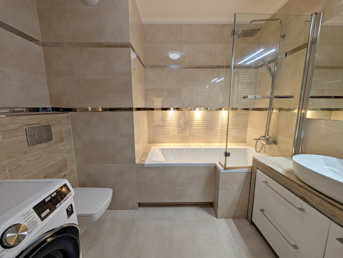 - Kuchnia: w pełni wyposażona w wysokiej jakości sprzęt AGD (lodówka, zmywarka, płyta indukcyjna, piekarnik, okap).